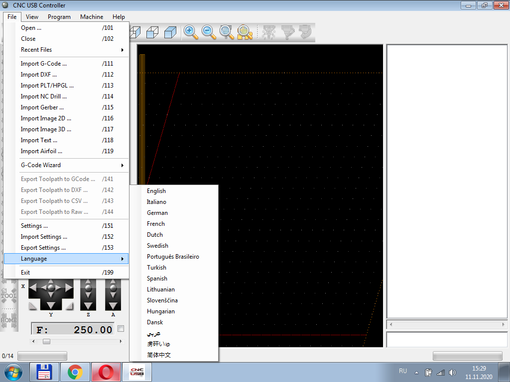 Виталий, а попробуйте языковой файл назвать CNCUSBController_RUS.lng и закинуть в папку с программой где ехе-шный файл проги стоит, может подхватит и в меню рус язык появится. Какие языки еще в меню старой проги 2012 года присутствуют, кроме англ.?Vitaly3108 писал(а): ↑ Просмотрел везде, нету у меня такого файла ни в одной ни в другой папке