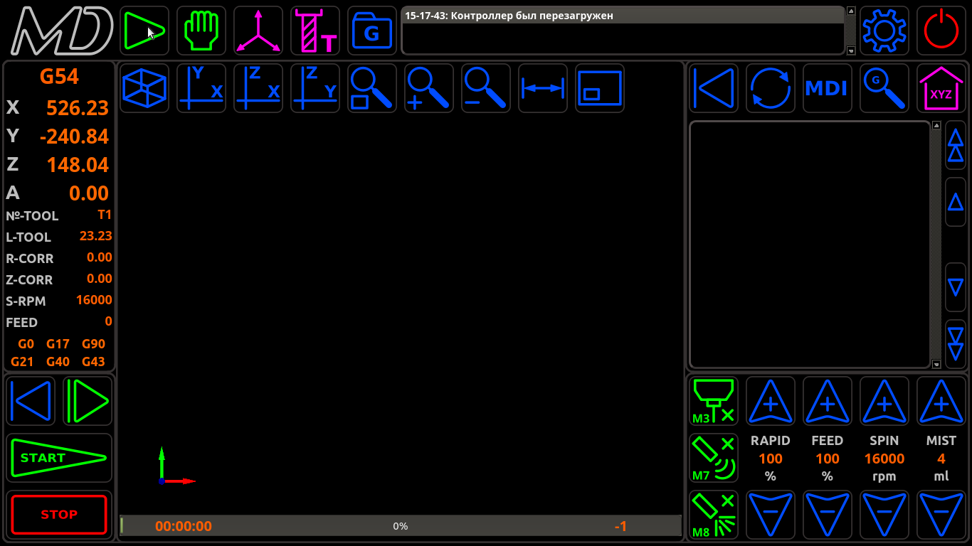 Да, понимаю, что производители станков будут не в восторге. Но, по факту производители уже начали трахать мозг, при том, что покупать, скорее всего, не будут. Чтобы интерфейс можно было как у тебя настраивать нужна и сама ЧПУ, которую можно гибко настраивать под любые станки. Тот же LinuxCNC. Я на такое пока не способен. Я даже не представляю, что с многоосевой обработкой делать. Как станок настраивать, как в 3d окне траекторию показывать, и с планировщиком не представляю как быть с многоосевой обработкой. Так что тебе моя прога не подойдет, а портить ради этого интерфейс - не хочу.