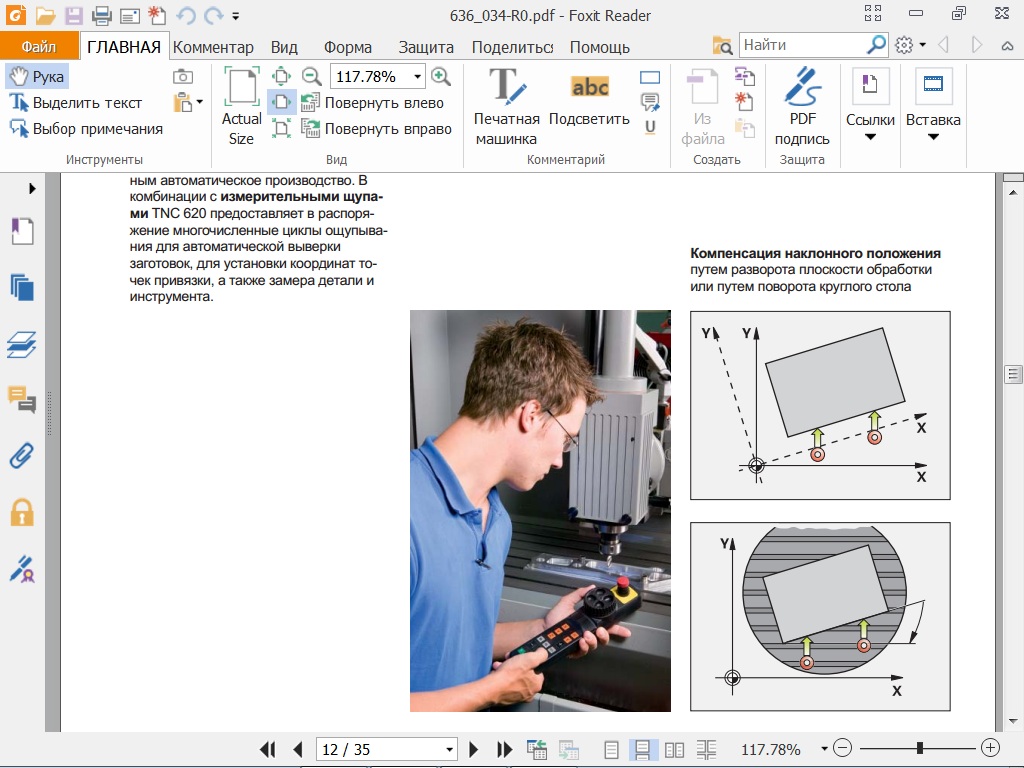 Если например есть у нас отверстия находящиеся на оси Y , которые должны к примеру иметь по Х 0 но заготовка установлена криво, ищем центр первого отверстия обнуляем оси координат, едем ищем центр второго отверстия , находим значения X Y это и будут наше расстояние между отверстиями и смещение чтоб не путаться сразу понятно будет что маленькое значение это смещение большое это расстояние (чтобы не путаться когда работаем не только по оси Y , но и по оси Х ). Далее берем инженерный калькулятор и подставляем данные в формулу arctg (0.5/100) = 0.28647651 (0.5 смещение 100 расстояние между отвестиями) Пишем в строке Г-кда в MACH3 G68 A0 B0 R0.28647651.Нажимаем Enter , и координаты загораются красным. Теперь если проехать по одной из осей на расстояние +100 другая ось проедет на расстояние +0.5. Если смещение было со знаком минус то и угол соответственно ставим со знаком минус после R.Если смещение относительно оси Х то оно