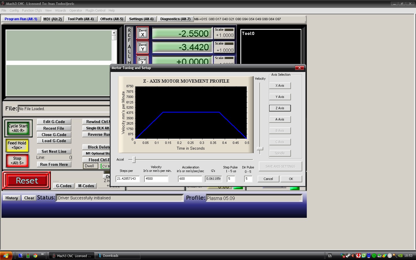 А вот проблема с мощностью на двигателях так и осталась не решенной.Поменяли контроллер,блок питания.Все бестолку.Движки работают примерно на 1\4 своей мощности(после часа работы даже не теплые).В Mach как я понял мощность никак не ограничивается.На контроллере 100%.Но при этом под Kcam при той же конфигурации все работает так,что каретку хрен сдвинешь. Загадка.