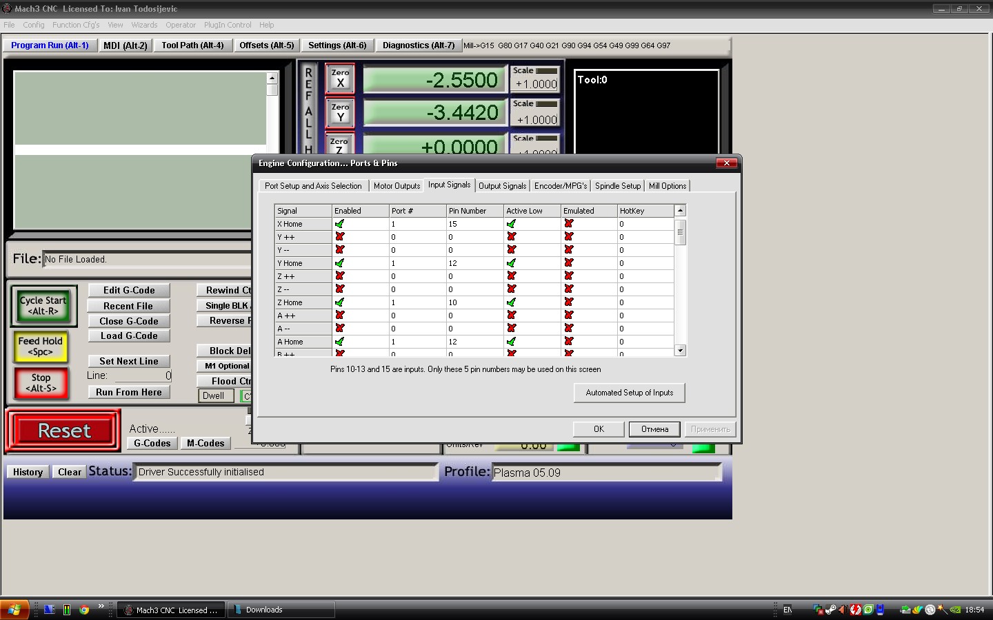 Мне до такого,как до Киева .....!Просто с англицким не дружу,а так для понятия ,что за что отвечает хотелось бы на русском.Фрезерные делалдо этого,а вот с плазмой столкнулся впервые.ТНС свою хочу сделать.Ось Z c MACHa убрать и повесить ее на ТНС но, чтобы программа тормознула на время определения положения горелки ,вставил М00 в программу, а дальше после выставленной высоты и зажженном факеле надо подать команду пуск. А она только на экране или опять же комбинация из двух кнопок ALT + R, что согласитесь не удобно.