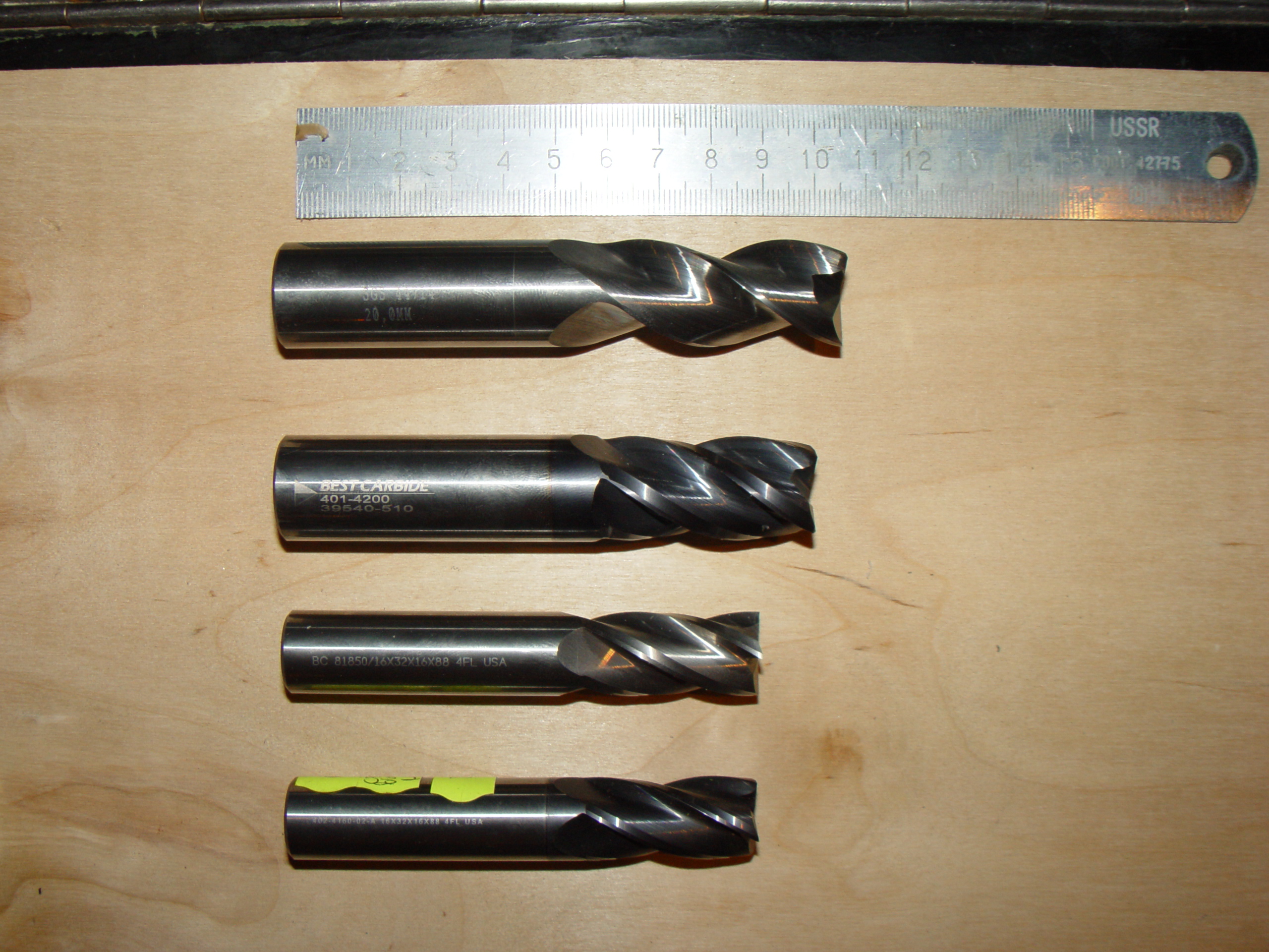 SGS 44714 3-х пёрая, диаметр 20 мм вот эта по аллюминию,Best carbide 81850 4-х пёрая быстрорез, а другие 2 твердсплавные по нержавейке и высокотемпературным сплавам.