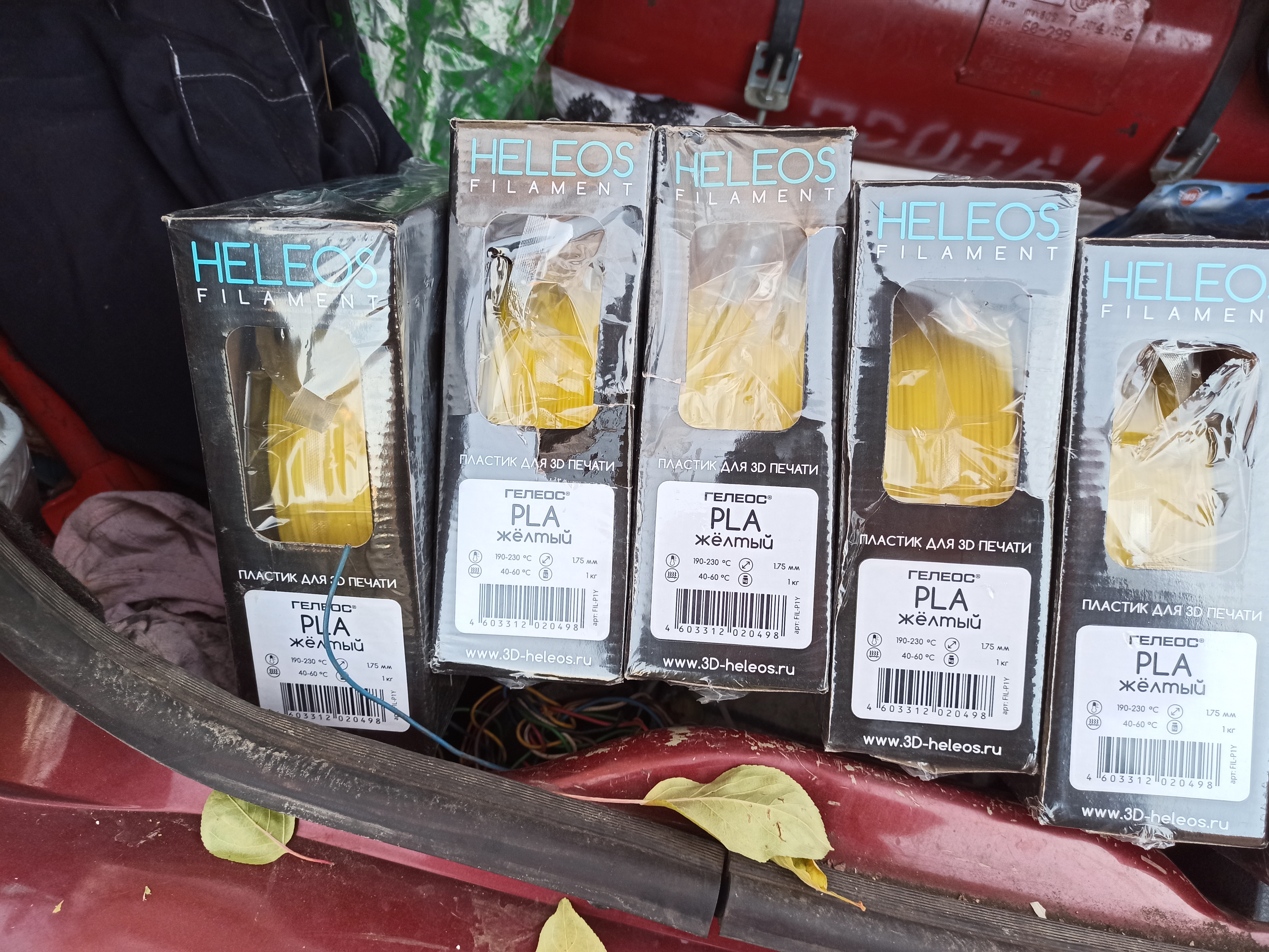 1)Pla пластик Heleos, 1.75 мм, желтый- 5шт