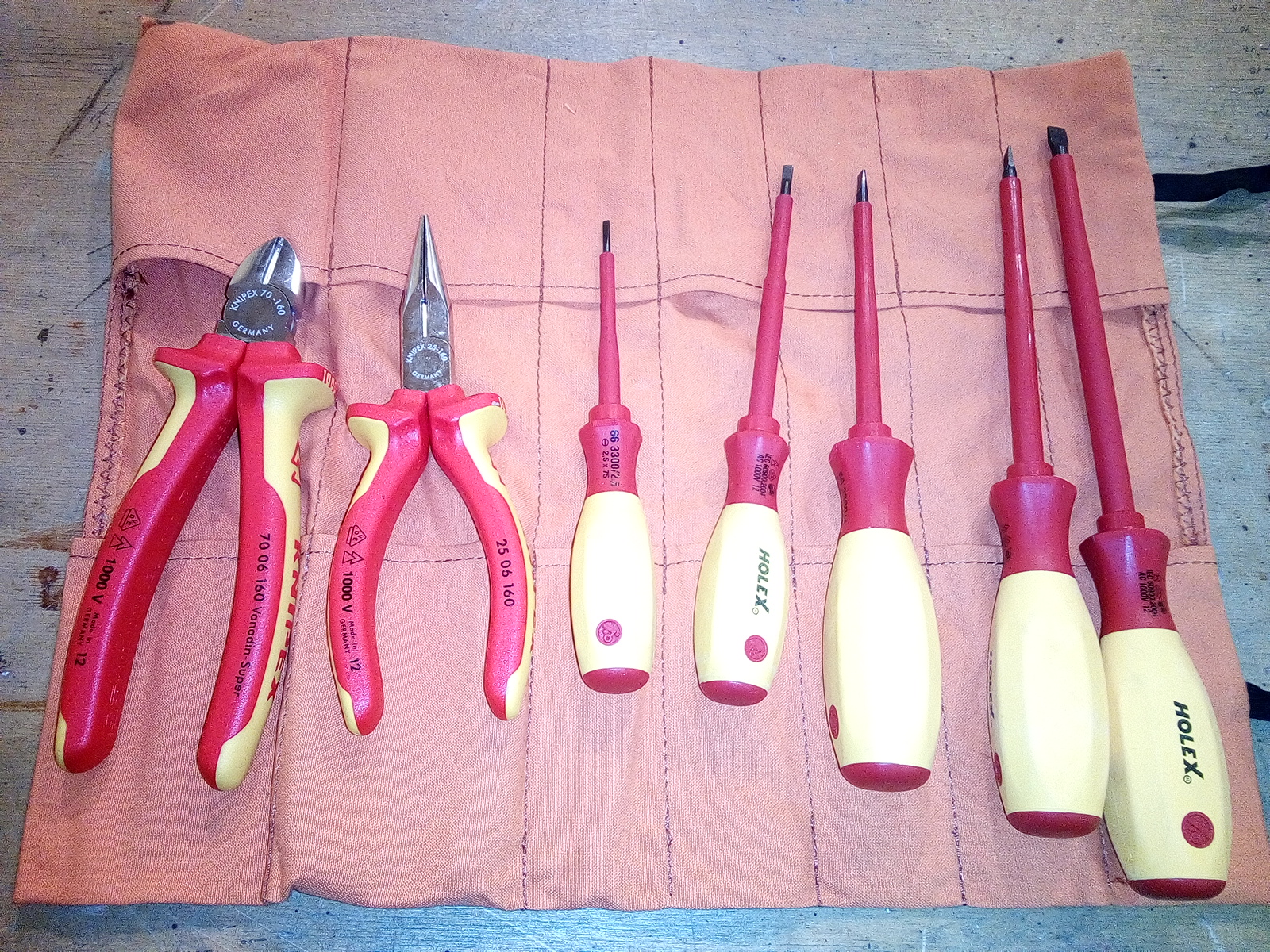 2 набора в оранжевых сумках со шлицевыми отвертками, длинногубцами и кусачками