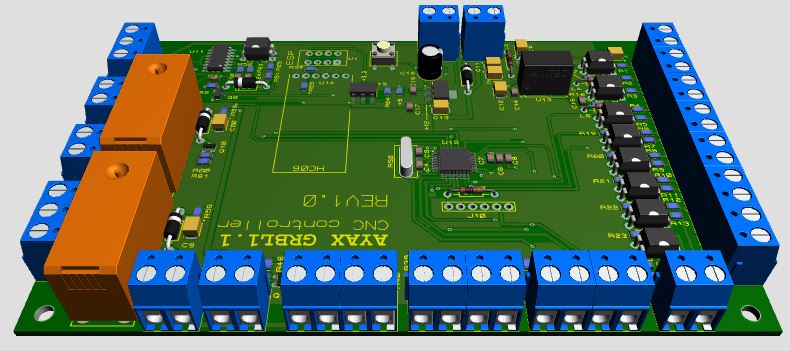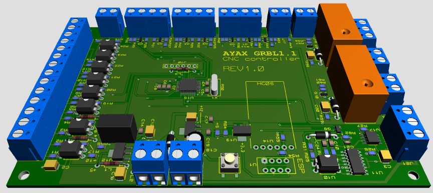 работает все что работает на GRBL, из своего это схема обвески атмеги и печатная плата.