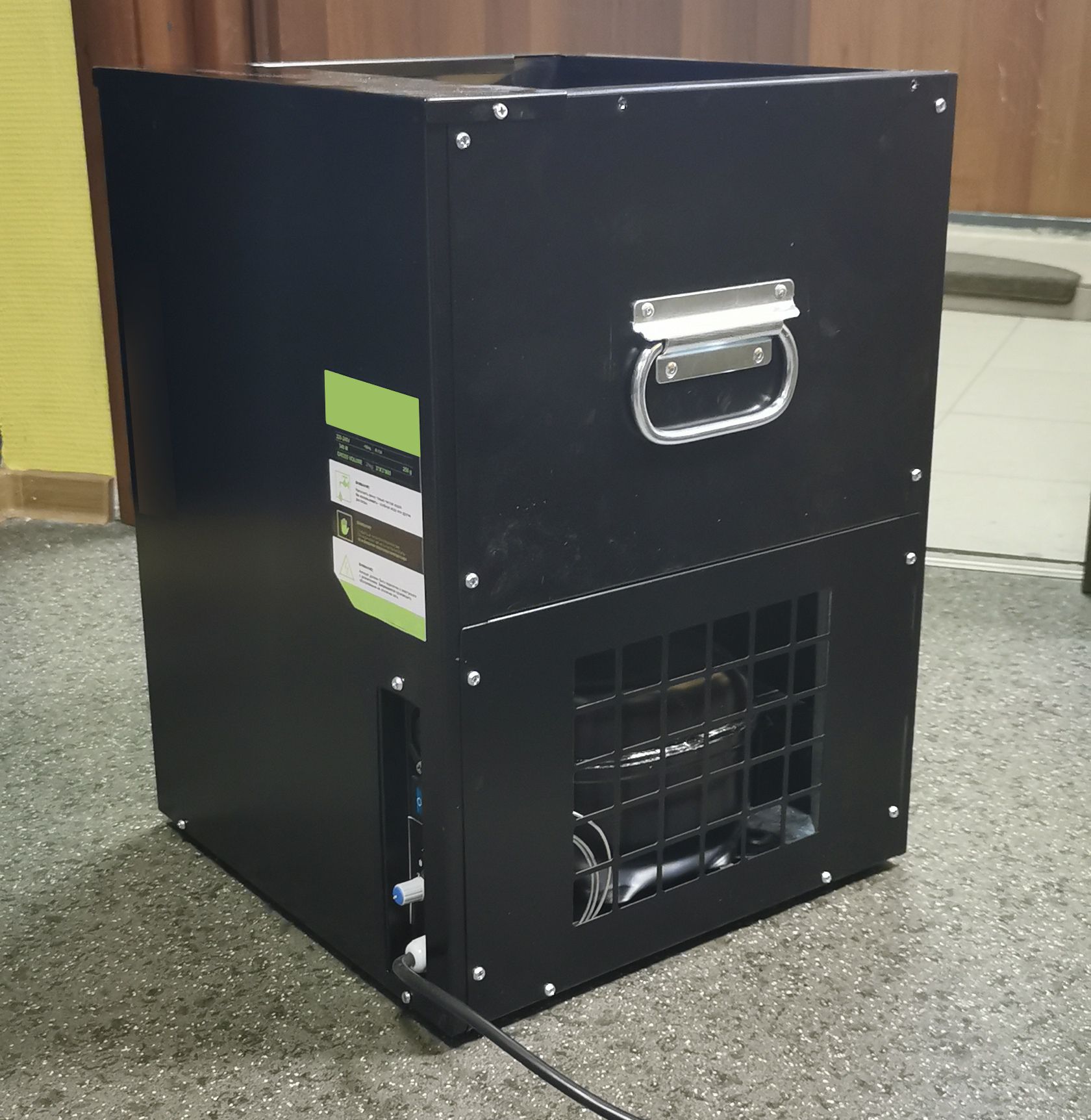 • Чиллер работает на хладагенте R134A, как у обычного холодильника.