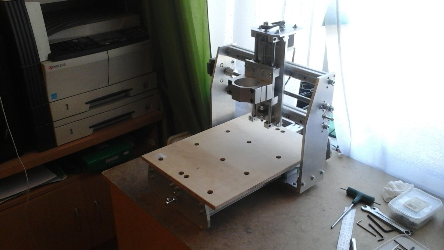 Продам КИТ настольного станка ЧПУ – внешние размеры без ШД 520х410мм, высота 460мм, рабочее поле 260х340х90мм, вес примерно 14-15кг. На всех осях стоят ШВП1204, оси Х и У выполнены на рельсах, крепежные отверстия под ШД типа НЕМА23. Крепление для шпинделя диаметром 65мм (1.5квт). Станок предназначен для обработки дерева и пластмассы, а также возможна эпизодическая обработка непрочных металлов (алюминий и т.д.).