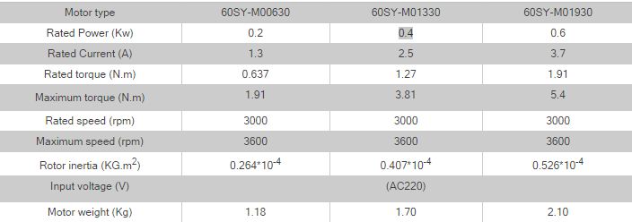 60SY-M01330S 0.4kw,2.5A,1.27N.m,3000rpm, драйвер SG15AS $277.5