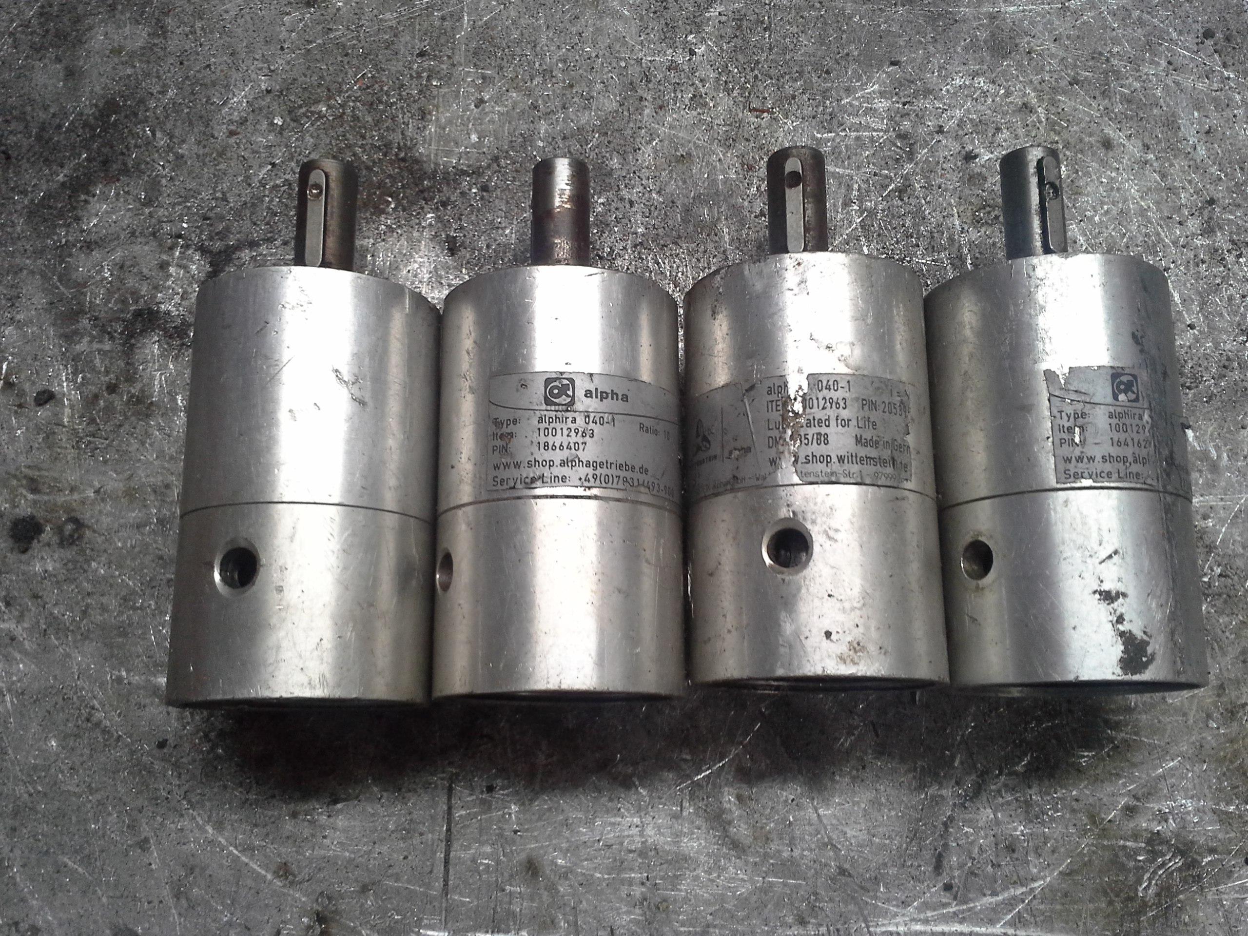 редукторы планетарные, бывшие в употреблении, ALPHA alphira 040-1 . передаточное отношение 10:1 . выходной вал 10 мм.момент 5 Нм. 4 шт . фактический люфт ощутим руками, и, к примеру, для точных перемещений они непригодны. 750 руб шт.