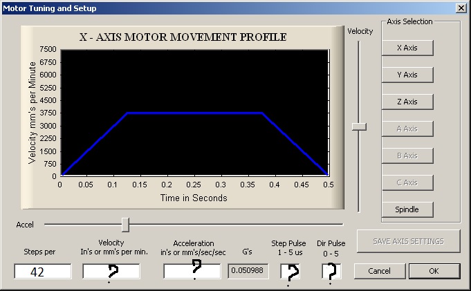 2)Моторы разгоняются и резко уходят в торможение) при движении на скорости 8000 и разгоне 450, какие настройки motor tuning выставлять. У меня на (оси Х 2шт двигателя нема 34 85кг 4.7мГн., каждый на отдельном блоке 500вт 36в,драйвера взяты с запасом на 25% от мощности для всех движков), (ось Y nema 24 - 28кг + планетарный редуктор 1:4) (ось Z nema17 18кг тоже на редукторе 1:4).