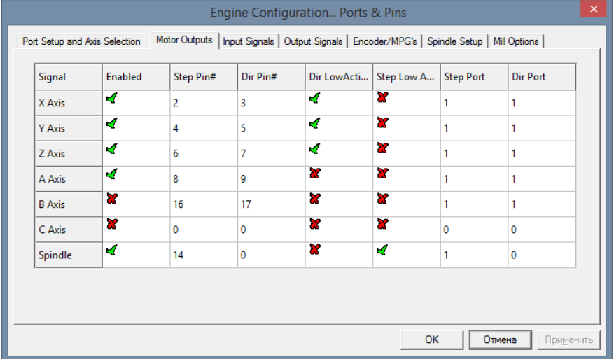 Делал всё инструкции к плате stepmaster http://stepm.ru/SMv25.pdf в итоге в отличии от инструкции нужно было у меня поставить + ещё две галочки на step и dir оси А и снять галочку на enable1 в Active Low, ДО ЭТИХ ИЗМЕНЕНИЙ СТАНОК ДВИГАТЬСЯ ВООБЩЕ НЕХОТЕЛ!!! только на удержание вставал