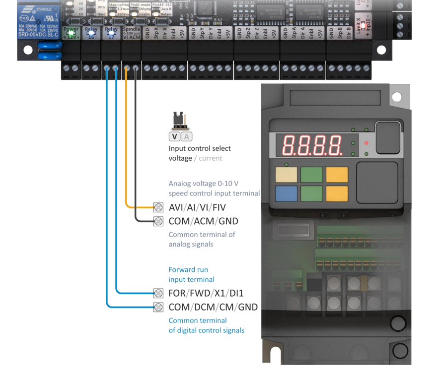 , если галочку зелёную поставить он просто стоит, причём я пробовал на двух разных ПК и одинаково, Инвентор Huanyang Inverter 2.2Hz настройки все выполнены, и те чтобы управлялся с клем на инверторе а не с табла, джампер переведён на Vi, провода расключены с платы на инвертор так