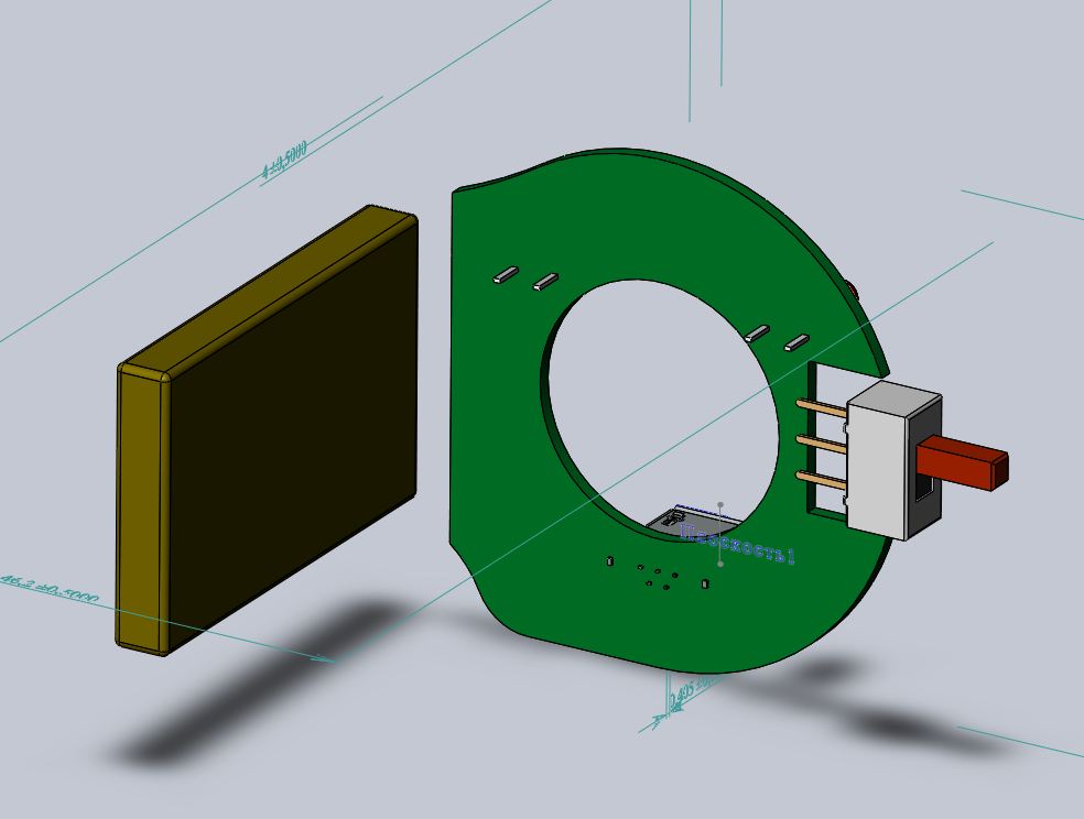 4. Выключатель, аккумулятор и мотор соединяются с платой на проводах- поэтому просто предусмотреть места для впайки проводов