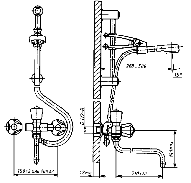 3) расстояние от дна ванной до лейки должно регулироваться