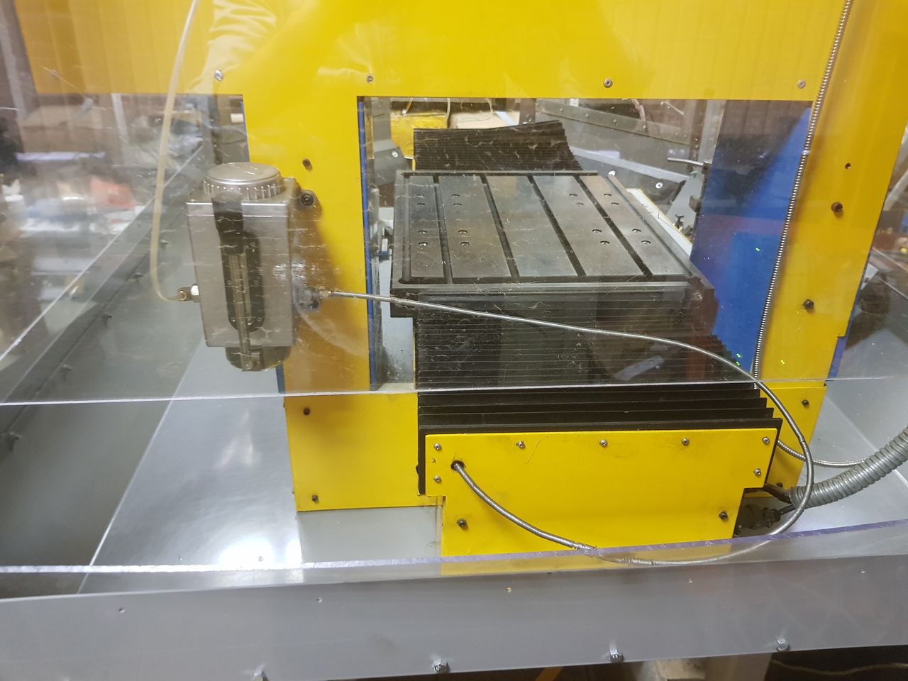 Кожух станка - сталь 2мм. Все подвижные части закрыты защитой.