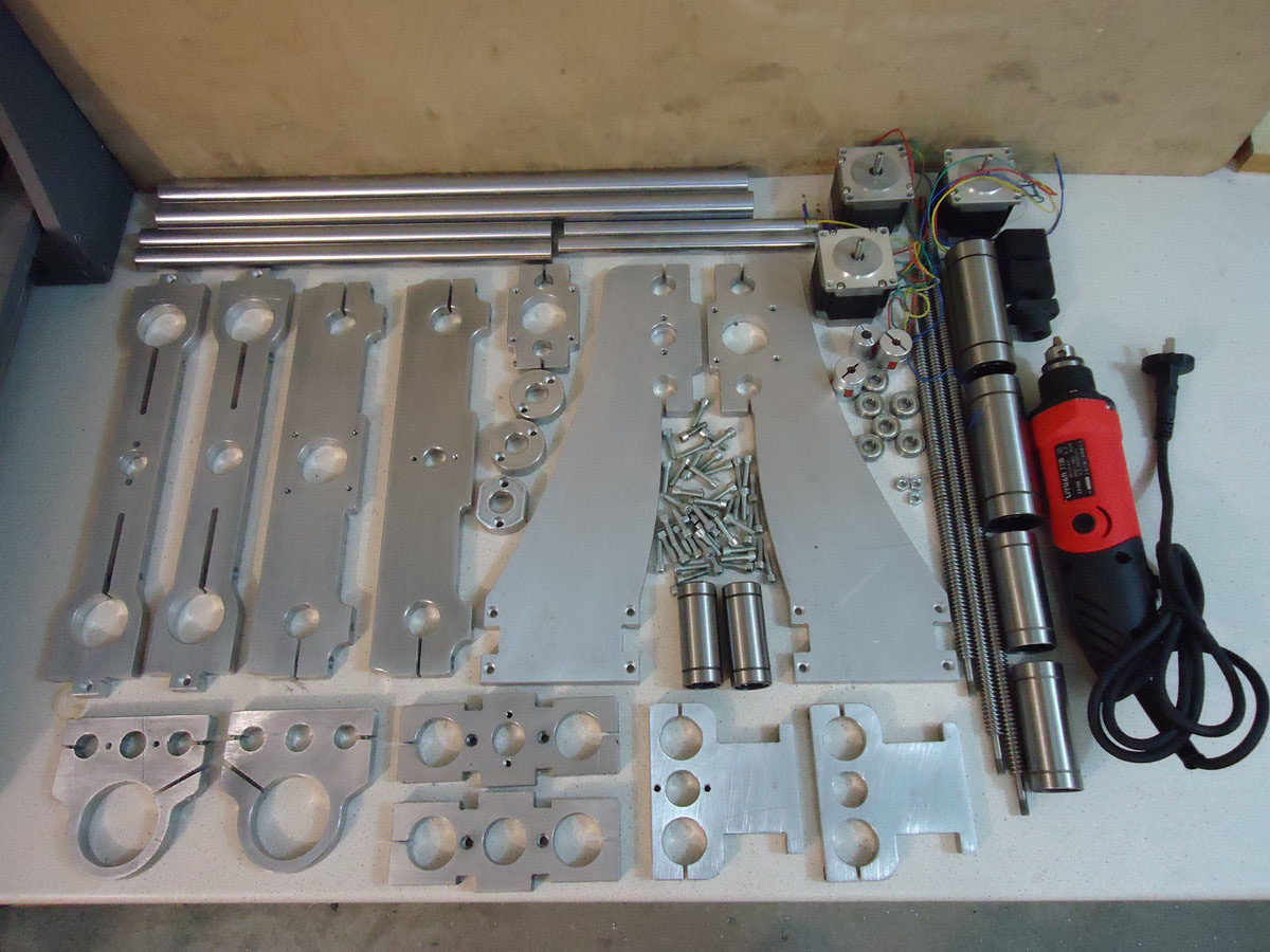 Наборы доступны в плите, купив такой набор, вам нужно будет просверлить отверстия, нарезать резьбу и собрать. Основной материал при производстве наших станков это алюминий, в некоторых случаях по желанию заказчика устанавливаем столы из фанеры или МДФ.
