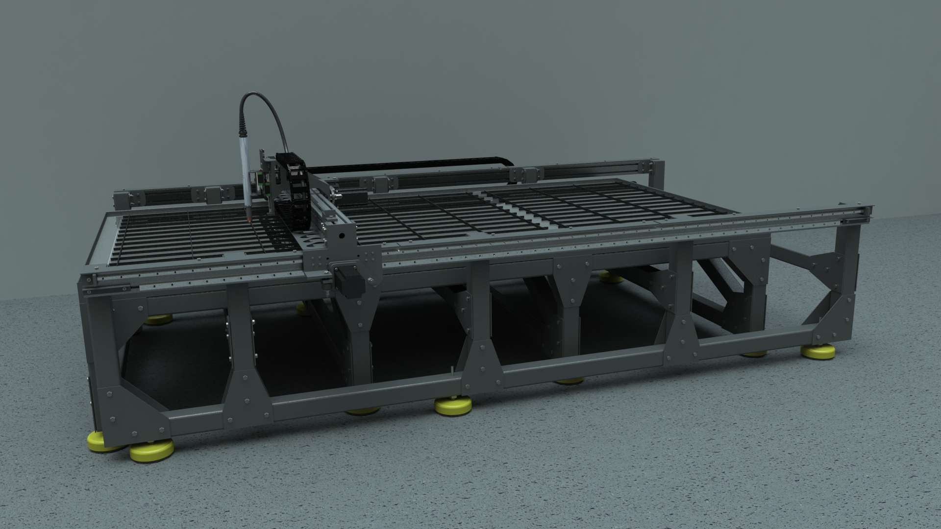 Одно из требований при разработке было возможность использования более мощного генератора плазмы. Именно по этому станина имеет высокий запас прочности. Стол может выдерживать установку материала толщиной до 60мм, но это уже предел.