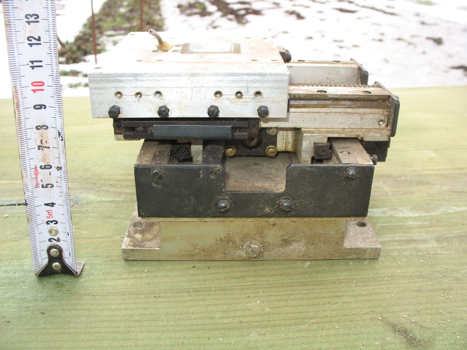 1. Первый, так сказать, лот. На стальной пластине две стальные направляющие(в ластохвосте шарики, люфты регулируются), два винта на опорах с гайками (резьба мелкая), два мотора шдр-721 соединяются муфтами с винтами. Концевики, оптопары и еще какая-то фигня сверху(её предназначение мне не известно).