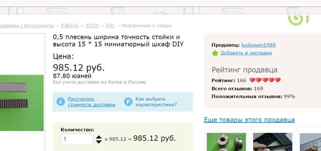 Шестерни - http://item.taobao.com/item.htm?spm=a23 ... =10#detail - цена 13.5 юаней(135 рублей) за штуку.