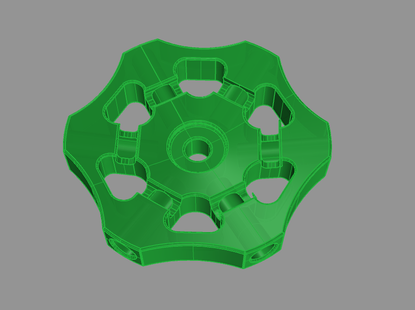 Данная деталь отлично вырезается на обычном 3-осевом станке из предварительно "обработанной" заготовки - на токарном делается "тарелка" и на сверлильном с помощью наклонного кондуктора и делительной головки сверлятся отверстия ;)