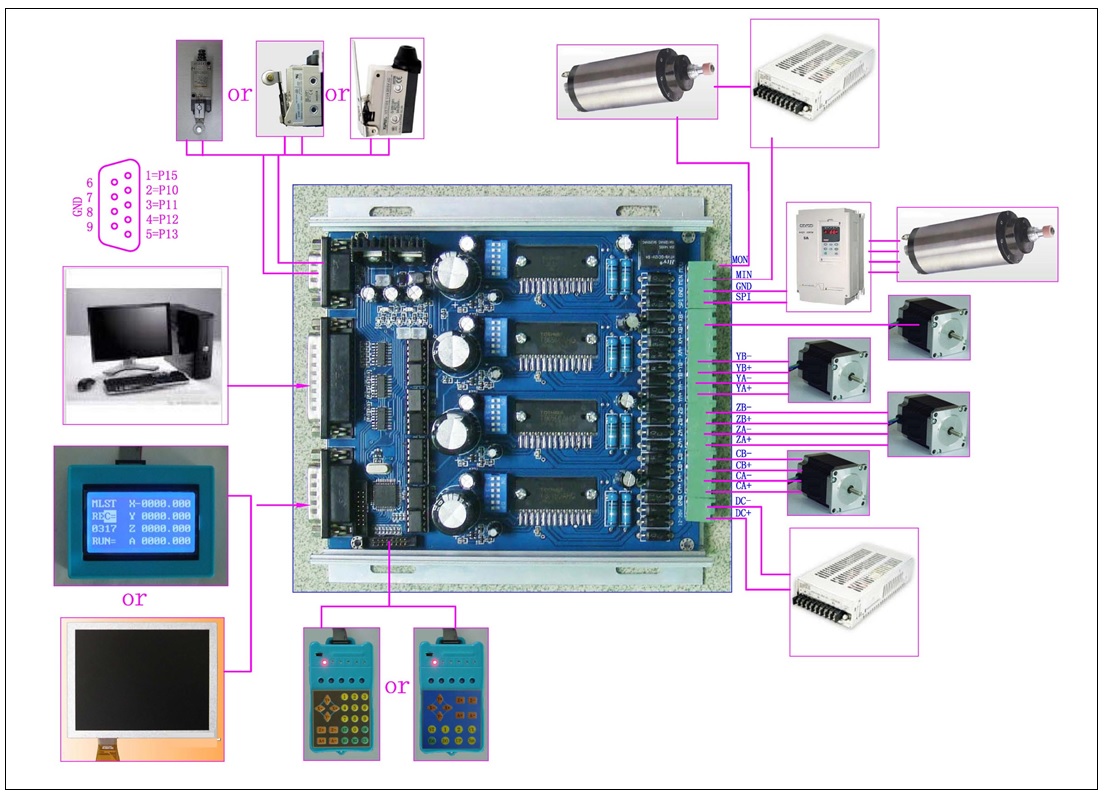 блок питания 24v 21a 500вт, кабель LPT. больше ничего и не надо. есть шим для управления преобразователя частоты для шпинделя. на картинке вроде все понятно. цена набора 19тр. всем удачи!