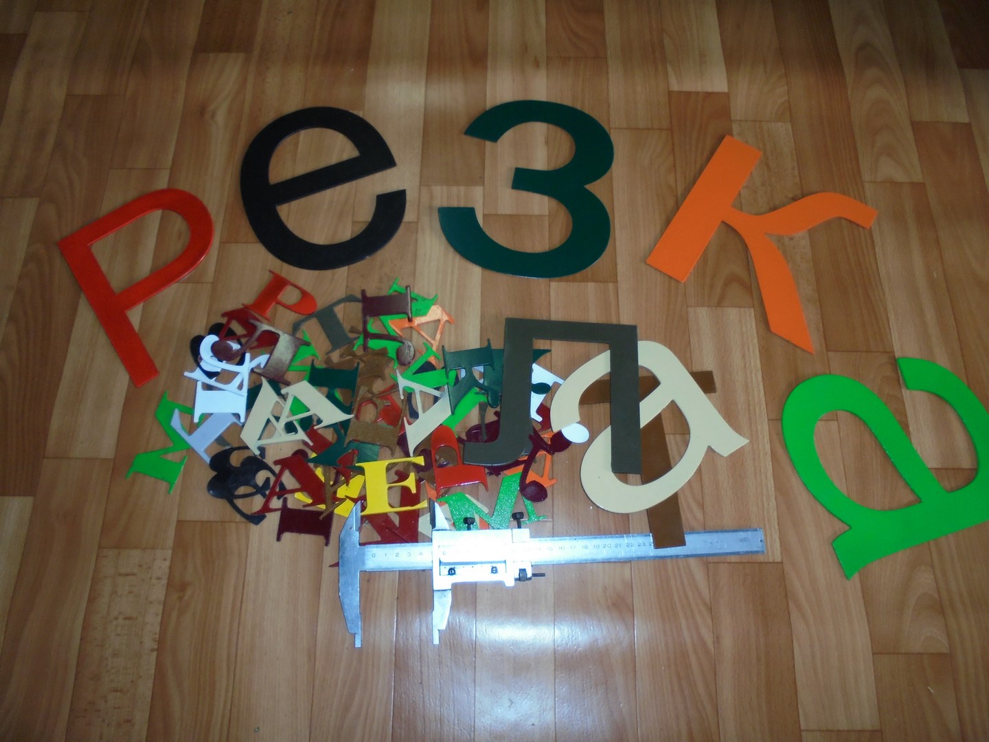 Буквы для наклейки в цеху для рекламы. Примерно цена одной маленькой буквы 100-150 тенге с покраской.