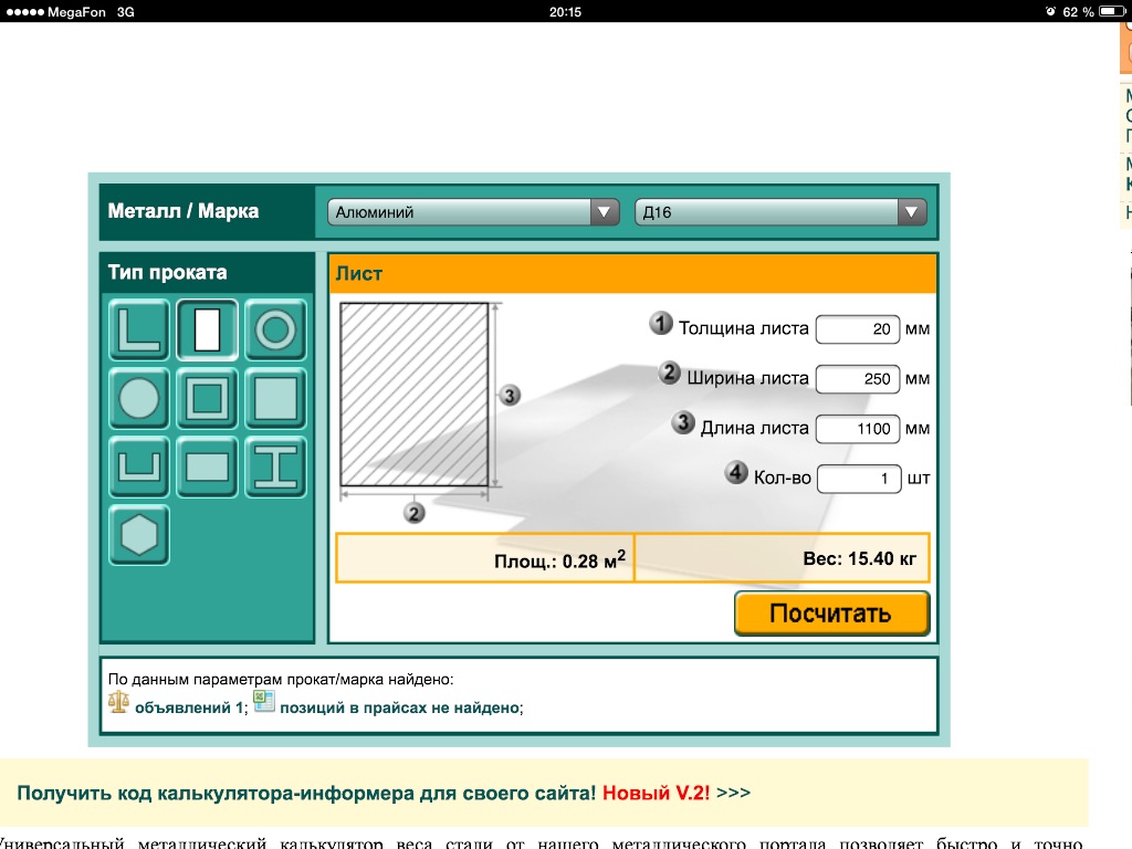 aftaev писал(а):Эти продают кусками Re: Заготовки Д16Т,В95Т1,АМГ6,7075Т73. Москва (Томилино)+Иже #88Силвер писал(а):В москве МС база, продает только целые плиты.