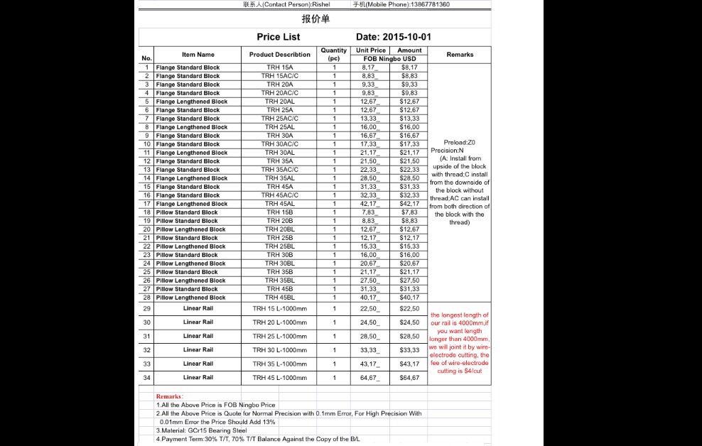 Получил от производителя рельс и кареток, обновленный прайс лист с ценами по акции. Акция на три месяца.