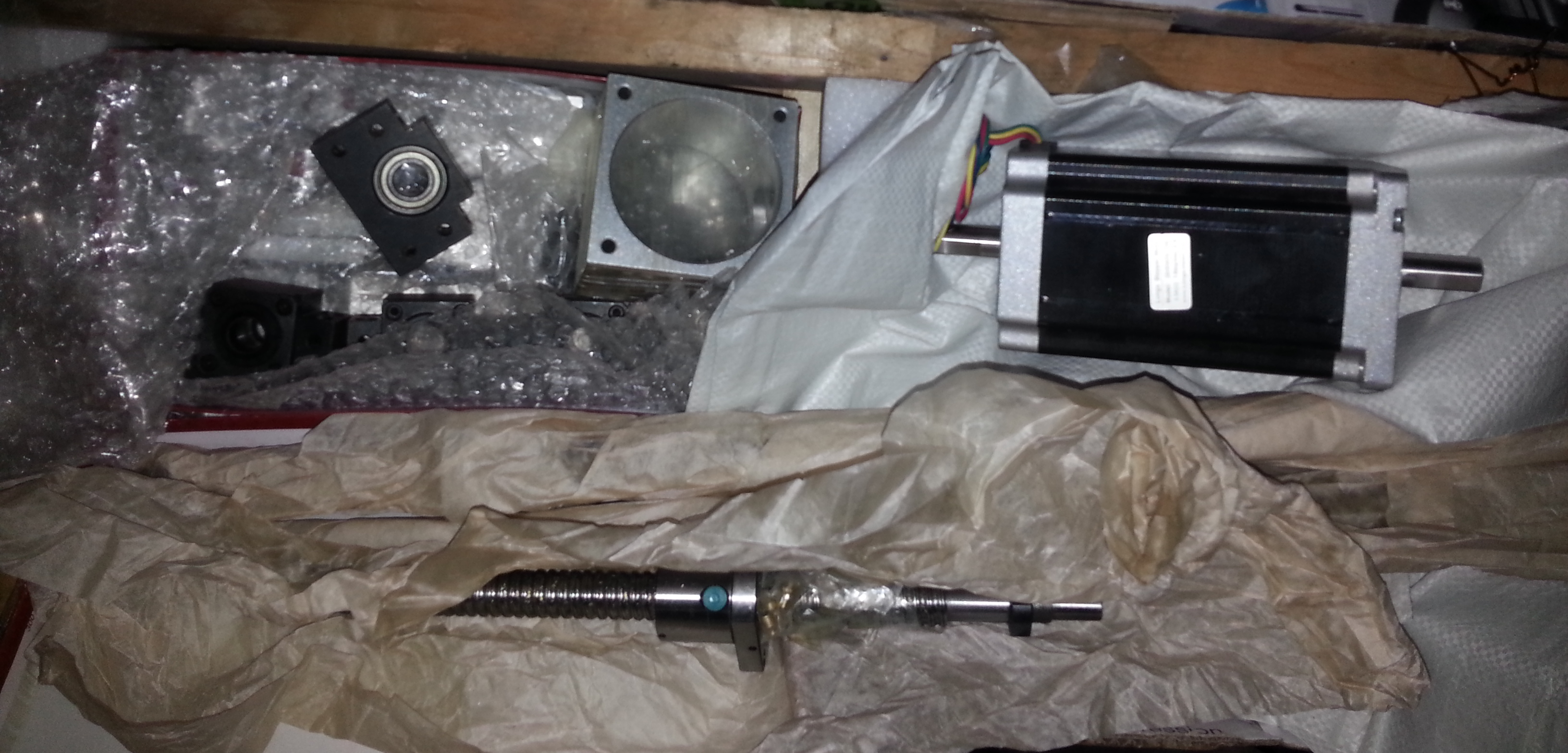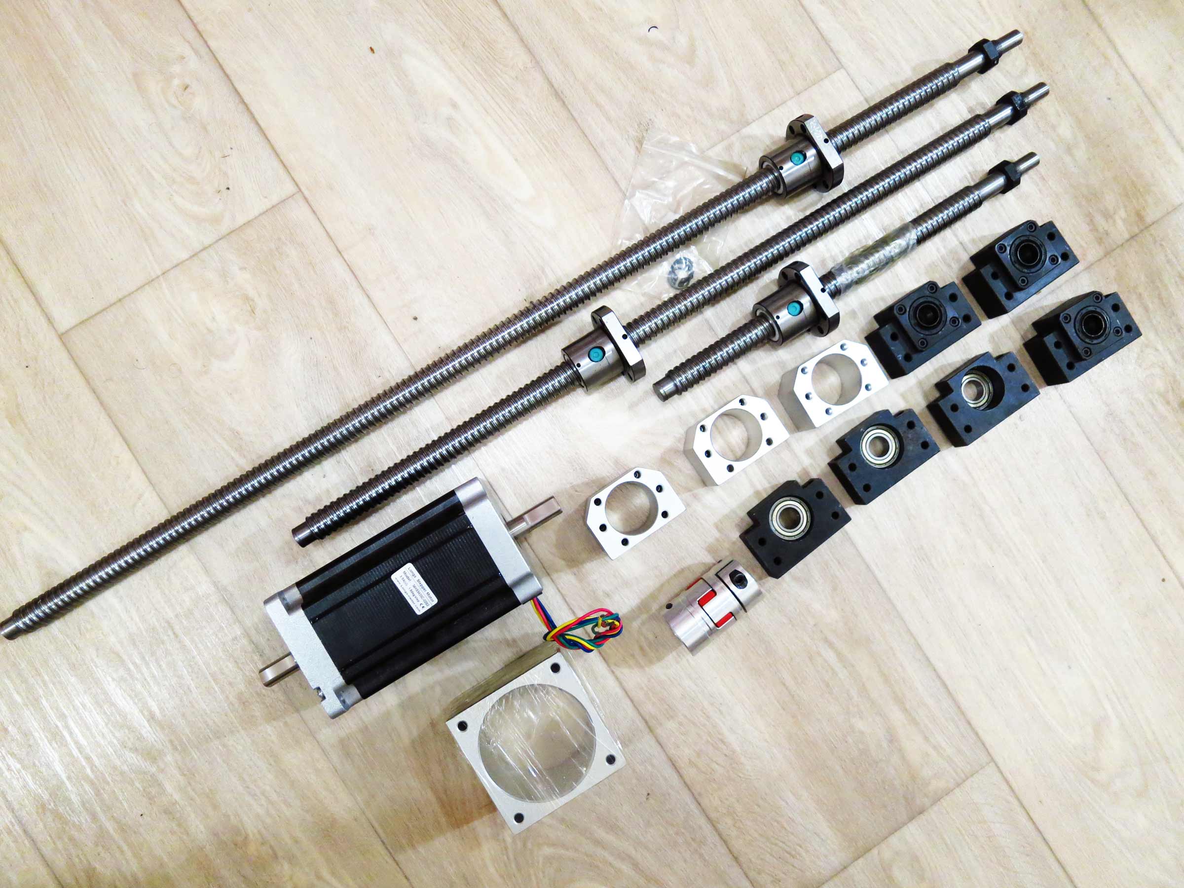 Собственно, имею новый комплект antibacklash ШВП С7 RM2005 длиной 850мм, 650мм, 350мм. К трем ШВП имеются три крепления на гайки ШВП, три пары подшипниковых опор (NSK Japan) BK\BF15.Также есть большой двигатель с двумя валами Nema 34 1600oz-in 151mm 34HS5435C-02B2, к этому двигателю есть муфта 12mm x 14mm D40mm L66mm, а также есть квадратное крепление для мотора NEMA34. Муфта, двигатель подходит к ШВП - думал ставить Nema34 на ось X.
