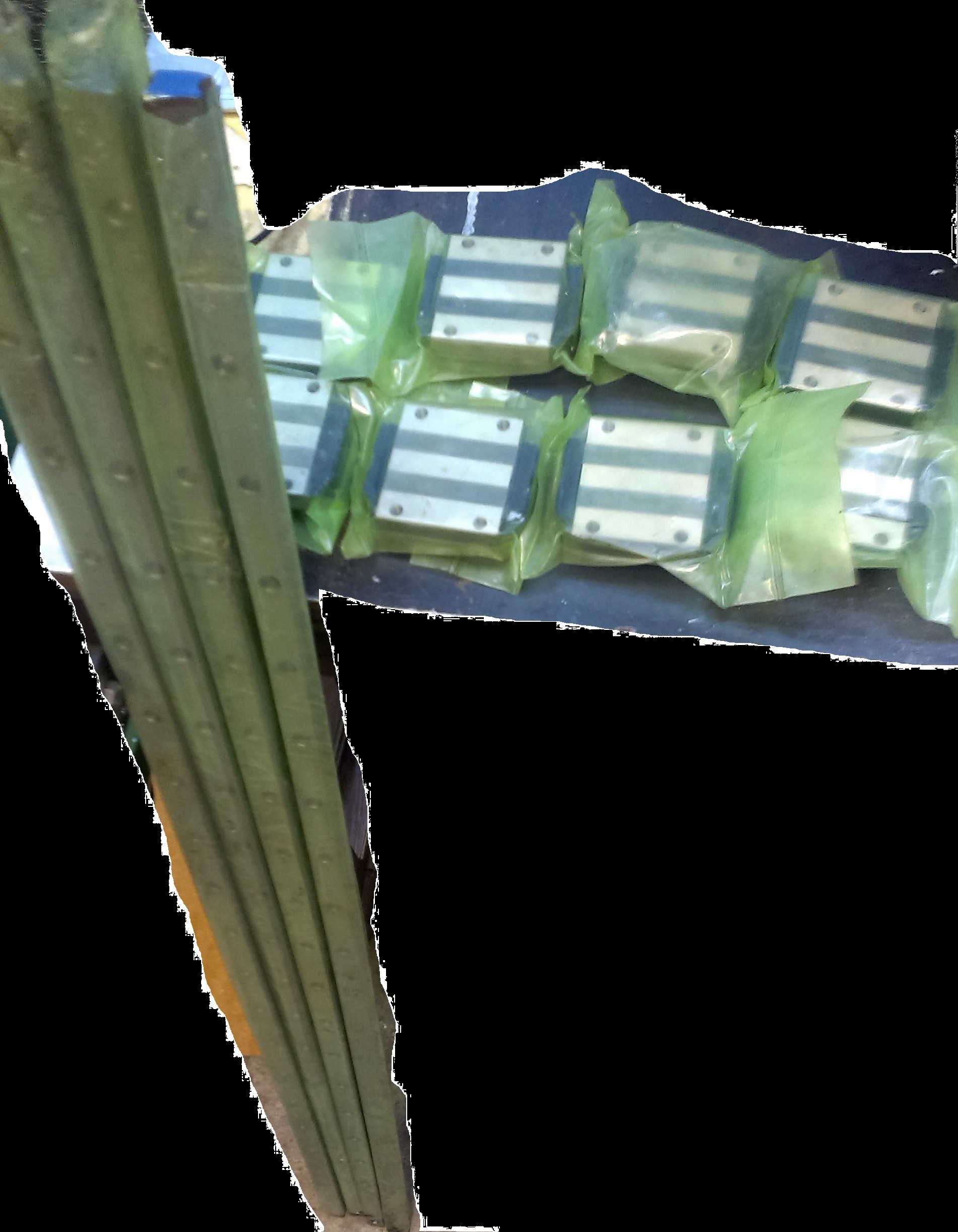 Остался 1 комплект. Рельсы чуть потерты сверху и на не рабочих поверхностях имеют небольшие дефекты. Не критично. Цена 18 тыс.рублей. Гайка и каретки в запакованной заводской упаковке.
