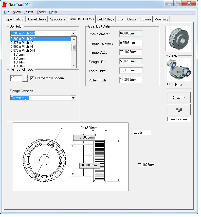 Программа очень хорошая! только что закончил пилить свое колесо под ремень MXL, профиль колеса брал как раз из такой проги. Так как сам ремень микроскопический, да и посадка на вал сервомашинки еще меньше, то сначала засверлился сверлом 0,25мм, чтобы выбрать радиусы, а потом прошелся фрезой 0,5мм.aftaev писал(а):При желании могу накидать чертежек