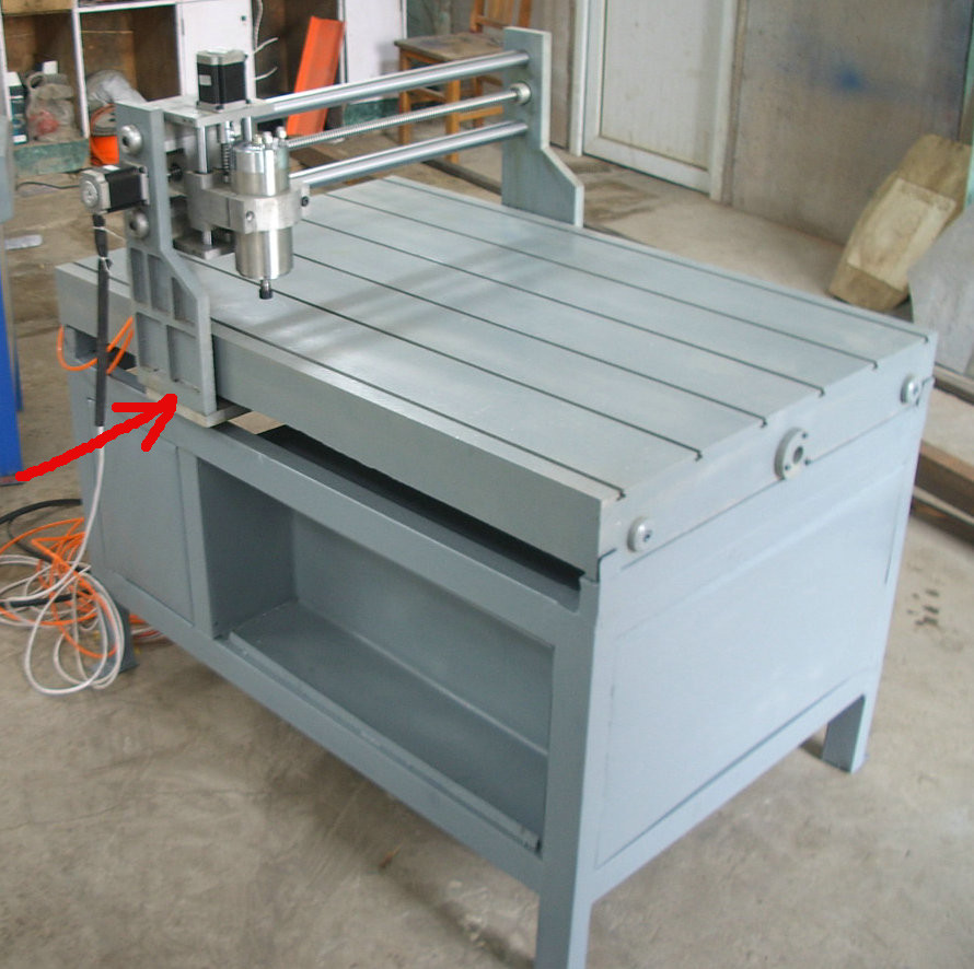 Да пожалуйста, набор основных узлов для сборки фрезера 60*90 : Литой алюминиевый стол 74*112 см. ( внутри полый, типа "П" образный. Ходовые валы 16, 30, 35 мм., линейные подшипники в комплекте. ШВП 1605, концы обработаны. Китайцы укомплектовали удлинёными шаговыми на 57 мм 3А с муфтами ( не маловаты? ). Всё отлито из алюминиевого сплава ZL104 по какой-то внутрикитайской классификации. Посадочные места под валы и винты-подшипники засверлены, можно устанавливать валы-винты. Качество литья стола не супер, по периметру есть каверны, но где посадочные места всё нормально. Что НЕ порадовало - не засверлены крепления боковых стоек портала Х к нижней перекладине( где гайка оси Y, красная стрелка на последней фотке ),hulli-gan@yandex.ru писал(а):Уважаемый Тенгель, а существуют ли варианты под длину полезной площади 600-700 мм или около того?