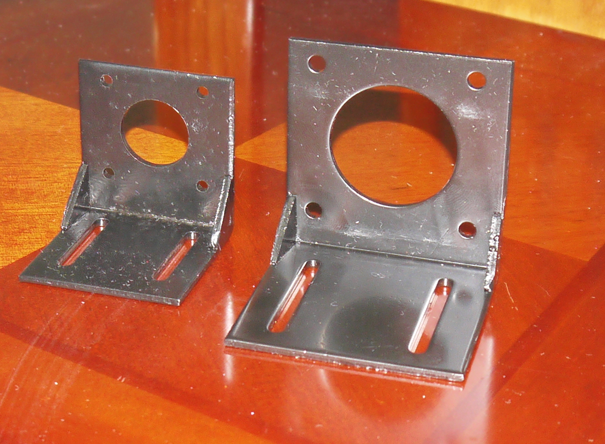 Монтажные уголки для двигателей на 42 и 57 мм. Сделаны из стали 2,5 мм, приварены усиливающие "косынки".