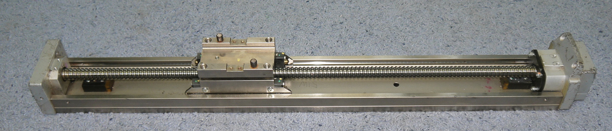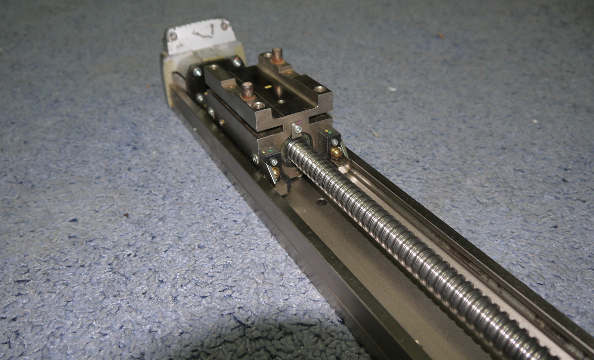 заказывал на таобао шаговые, наткнулся на такую штучку : Готовая ось для станка, хотя не новая, но ЯПОНСКОГО производства. С чего снята не знаю. Видны следы небрежной транспортировки, царапины. Однако никаких деформаций нет, всё двигается и крутиться очень легко и непринуждённо, люфтов тоже нет. Даже можно перемещать каретку рукой, ШВП 1605 начинает сама вращаться, причём как то так плавно и степенно, чувствуется благородное происхождение
