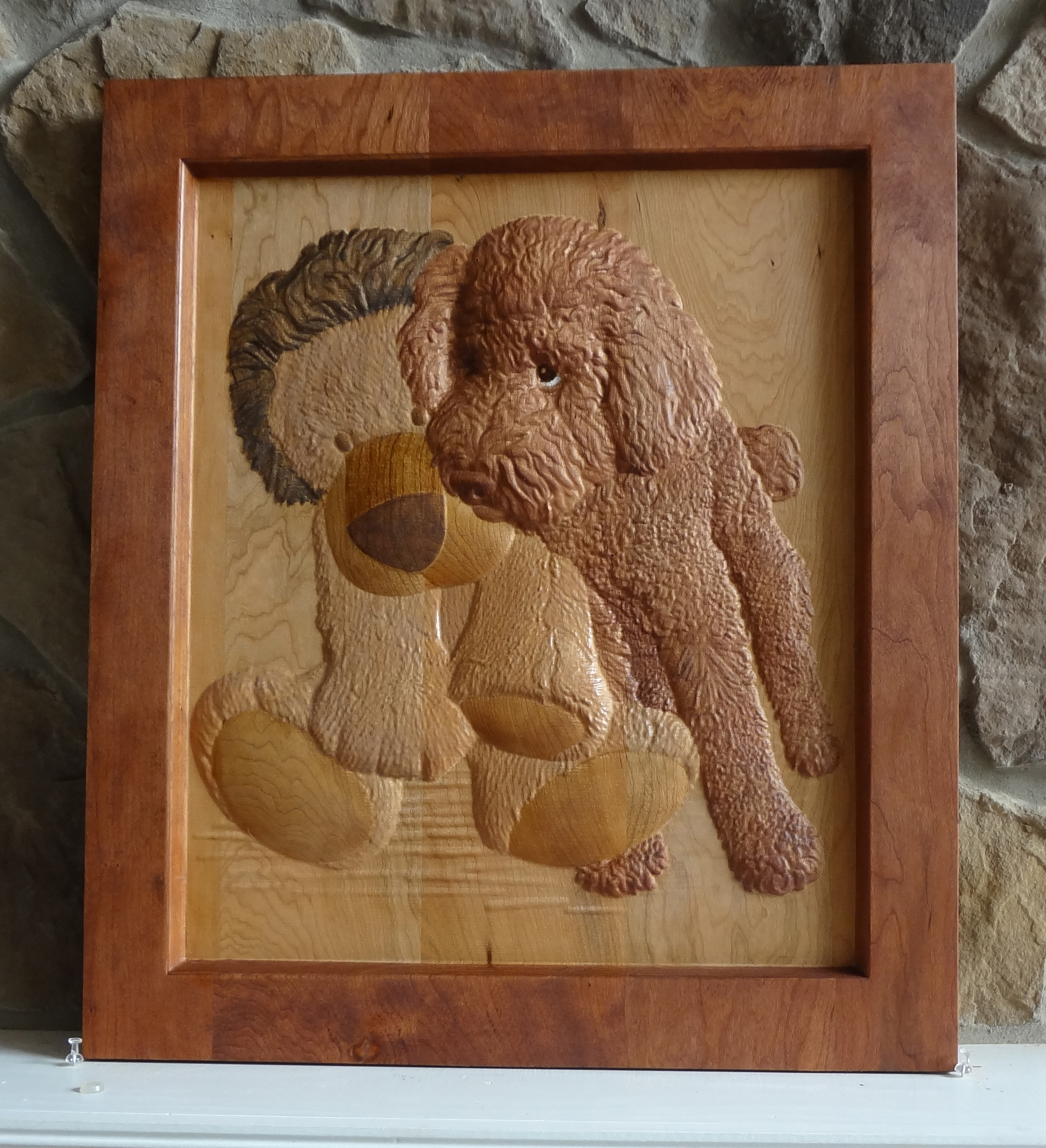 Барельеф "Собака с мягкой игрушкой". Фото изделия и модель.