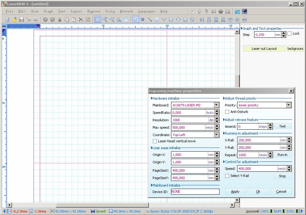 LaserDRW заточена для гравировки растра, CorelLASER ещё не разбирался с ним. В пути ещё контроллер, какой то самый дорогой многофункциональный, в комплекте аж 3 USB ключа, под весь китайский лицензионный софт для лазеров, надеюсь будут возможности для векторной резки.