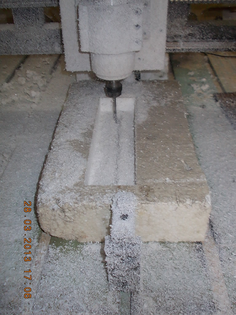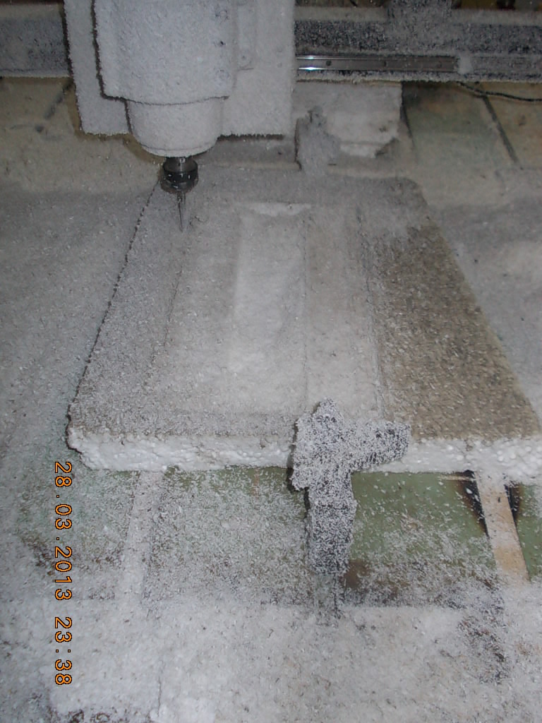 Модели лучше изготавливать из экструдированного полистирола(не крошится). Но так как у нас в городе его цена приближается к цене листа Ала, то используем то что есть. Используем пенопласт гранулированный (который у нас делают не высокой плотности жмотят гранулы )вырезали другая часть