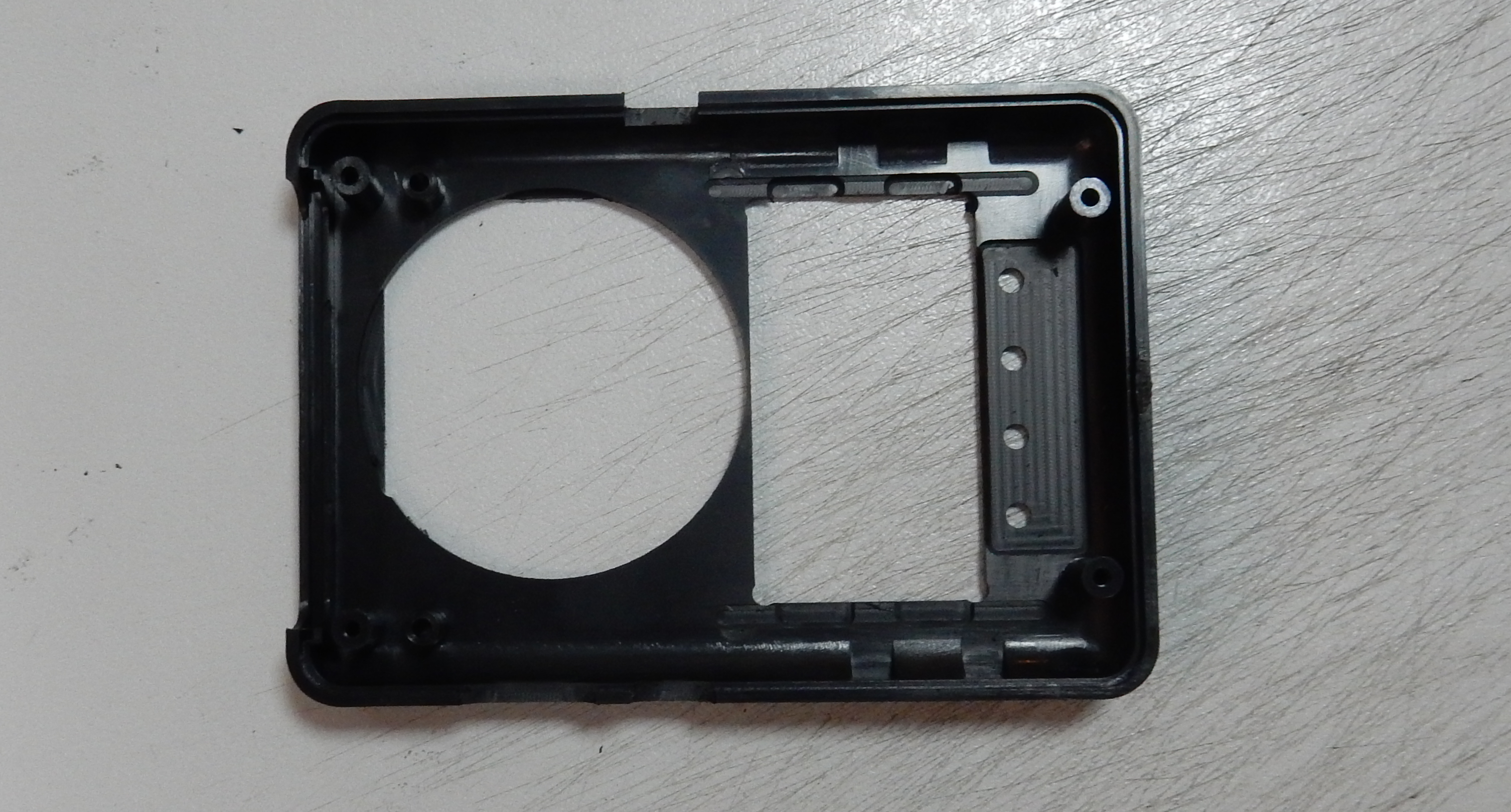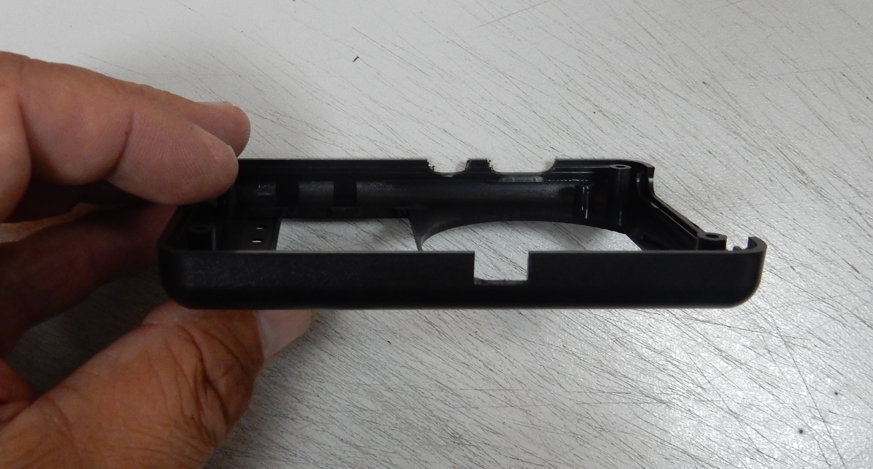 Конструкция оправок задается "анатомией" корпуса. В данном случае корпус удерживается не за бока, которые скруглены и имеют легко повреждаемую текстурированную поверхность, а за прямоугольное углубление на лицевой стороне глубиной 1,5мм.