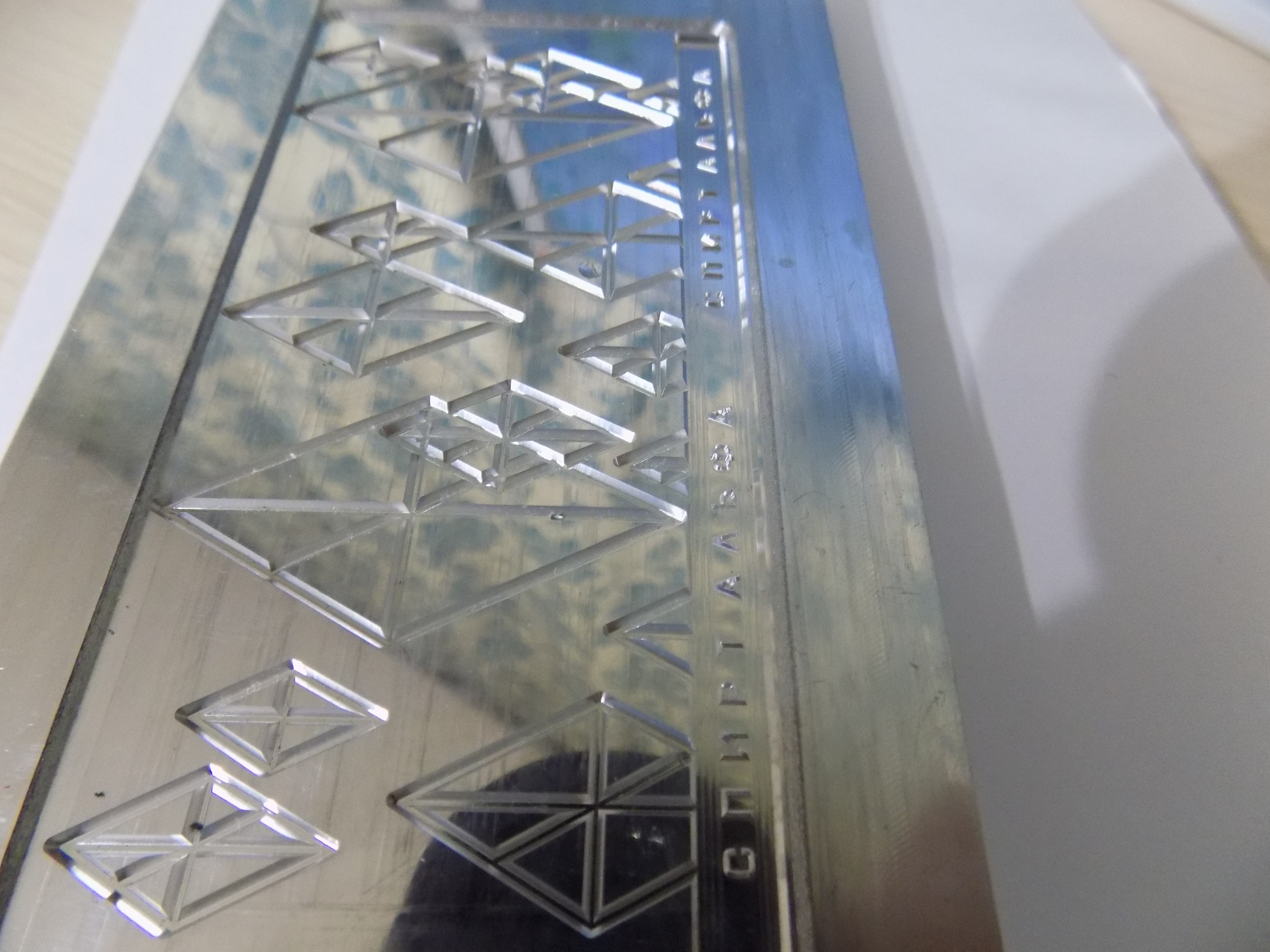 Соответственно поверхность нужна вот такая... Возможно они как-то отполировали, но я не пойму как внутри выпуклых букв такая же зеркальность. Т.е. если взять букву "О", то внутри круга всё чистенько. Ручным инструментом и полировальными пастами туда не залезть (сам пробовал). Как вариант, можно было бы кинуть деталь в вибро-тазик с мелкими полировальными гранулами и добиться такого результата (наверное). Но есть одно НО: - торцы детали не отшлифованные. Значит я смею предположить что эта зеркальность осталась после гравировки.