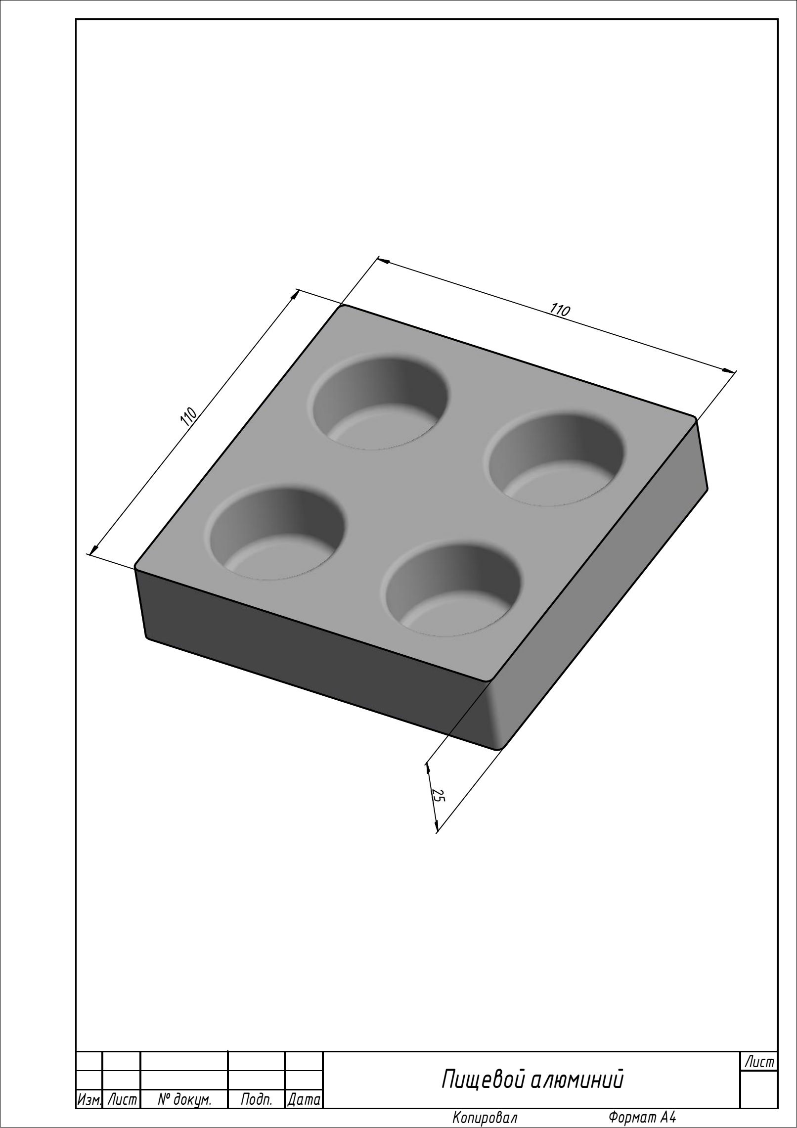 Необходима изготовить детали методом фрезеровки с пищевого алюминия 110х110х25