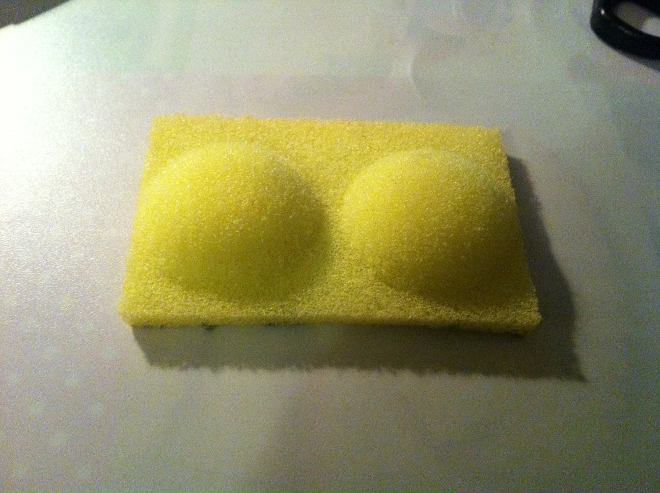 Кладем второй лист (пуансон) на стол, на него - лист поролона, на него - матрицу. Сжимаем бутерброд, так, чтобы поролон "выпер" из отверстий матрицы. Фиксируем в сжатом виде.