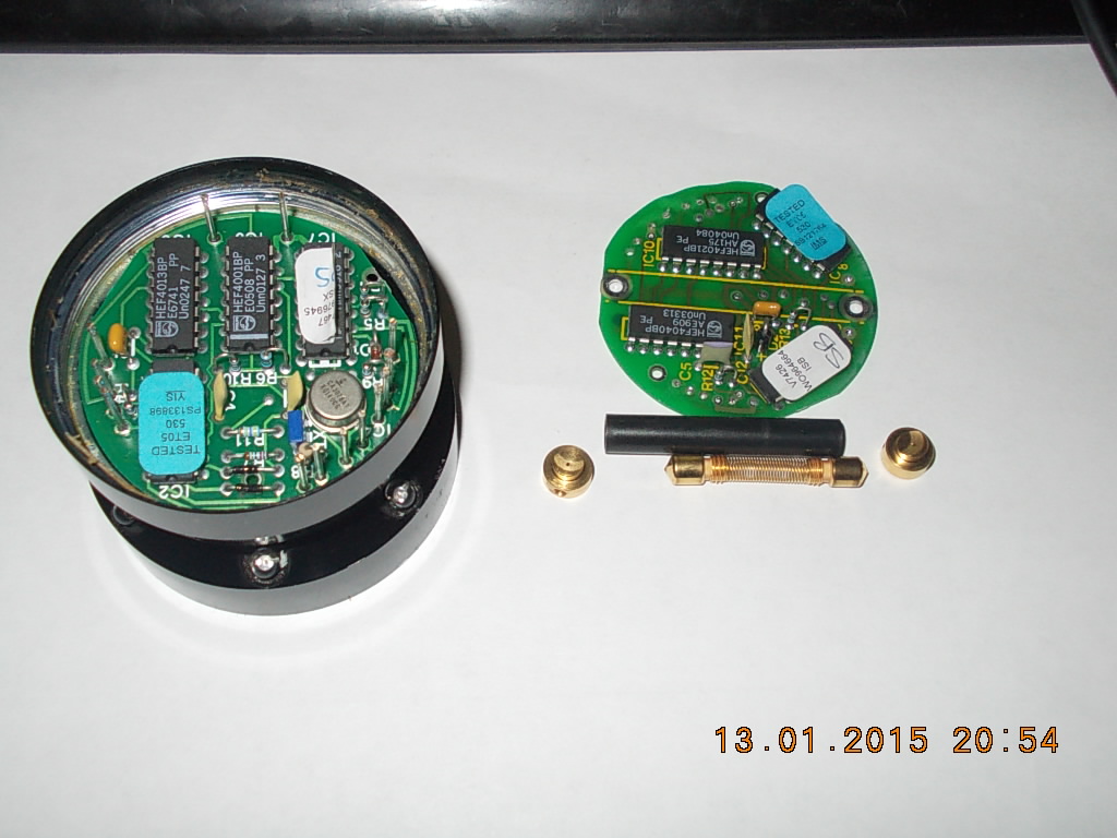 Под ним ничего нет, просто выступ корпуса. Потом с боем открутил переднюю крышку. Взору открылся самодостаточный модуль с датчиками, который связан с платой внутри корпуса прижинками. Сам модуль датчиков вполне напоминает таковые у подобных модулей.