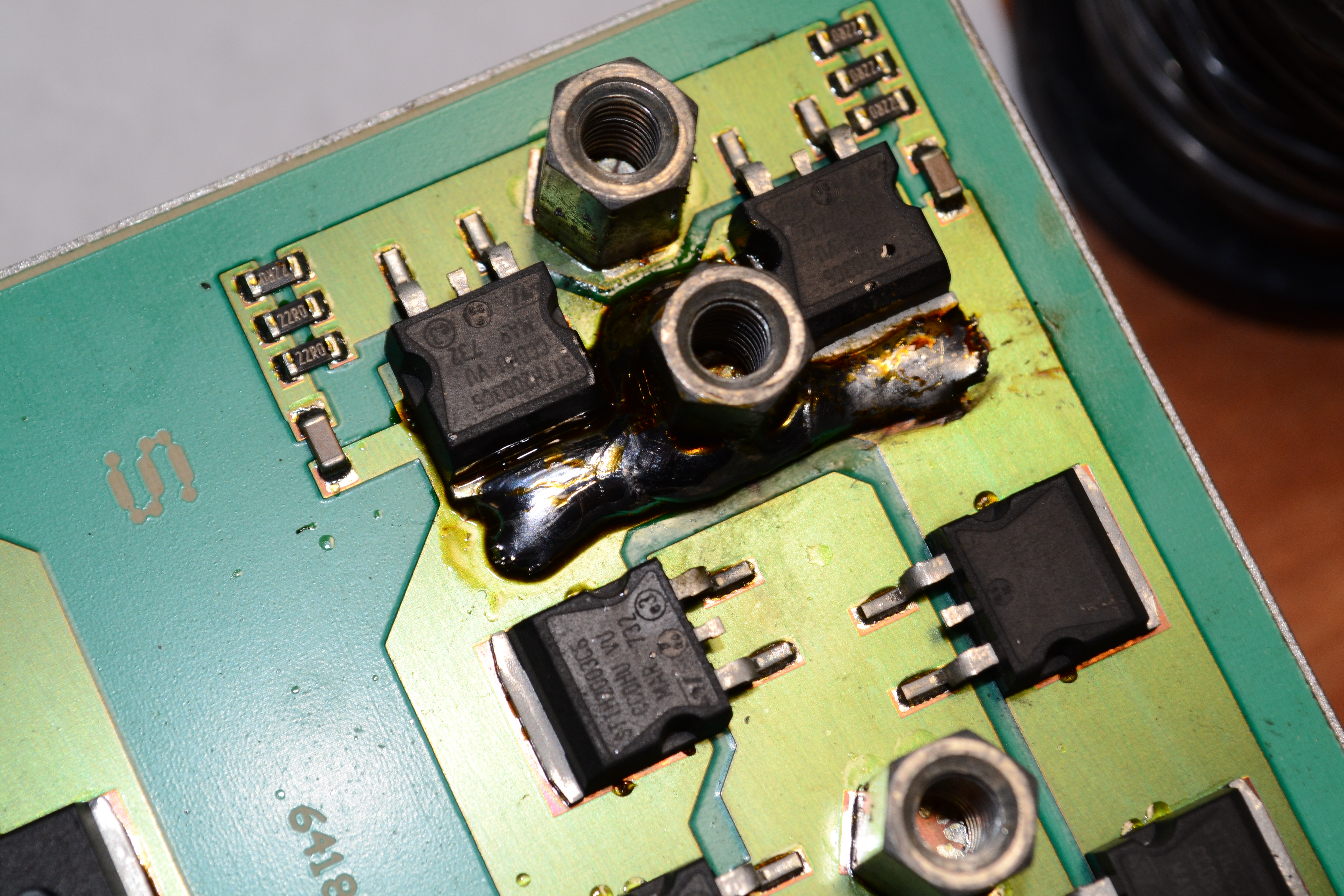Да, тут как в анекдоте, французы такие развратники (так у них сделаны все (за исключением ранних) IMS, GYSmi и Fubag). У них у всех сила по IMS-технологии собрана (плата на алюминиевой основе приклеена к радиатору). Я просто весь радиатор бросаю на газовую плиту, главное температуру контролировать, чтобы не расплавить припой, иначе силиконовый герметик стягивает все детали и модуль можно выбросить. Ну а когда нагрел обычным паяльником пается...