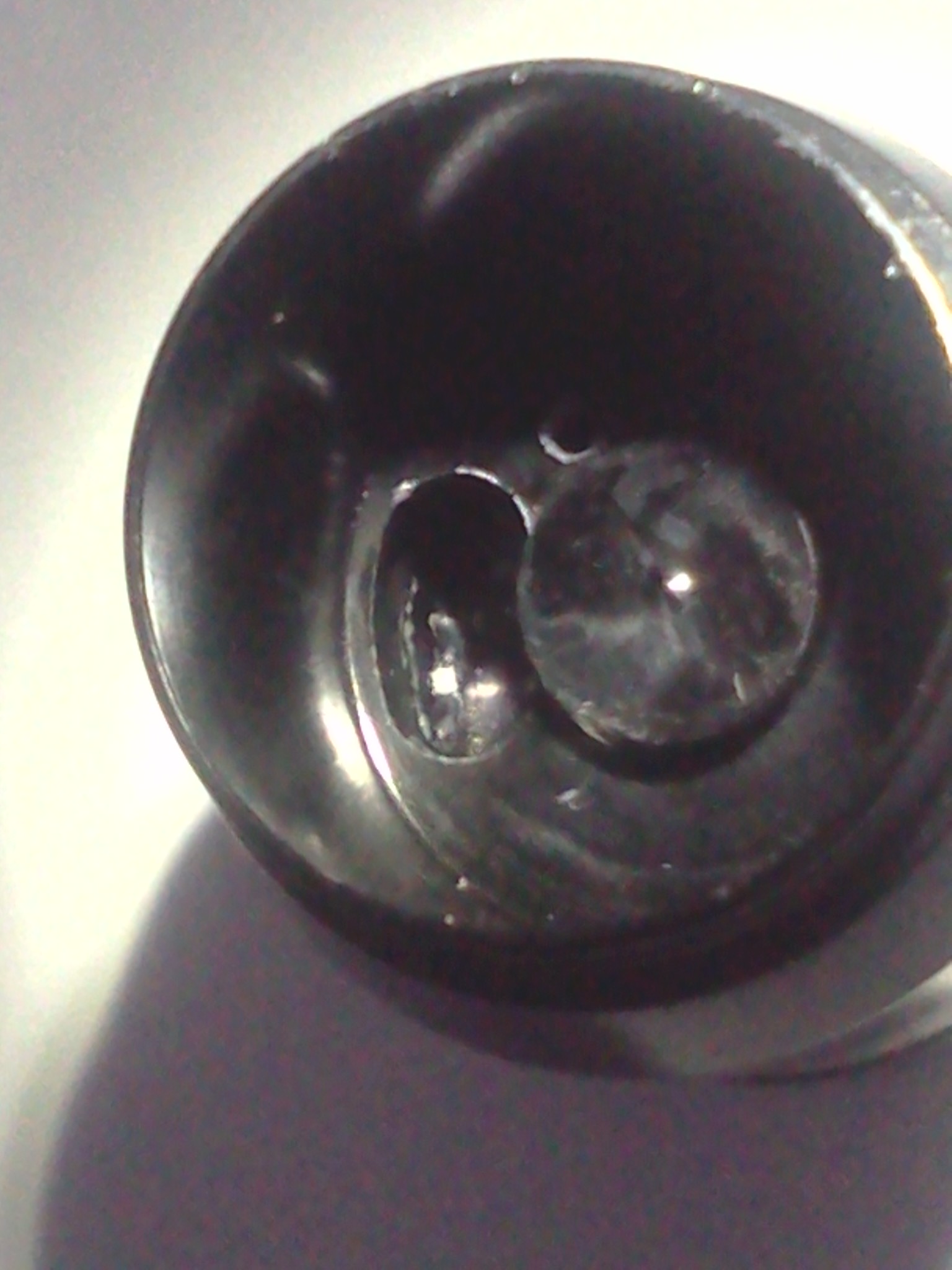 Оказывается, посадочное место разъёма - просто гладкое цилиндрическое отверстие. В торце видно отверстие под светодиод 5мм