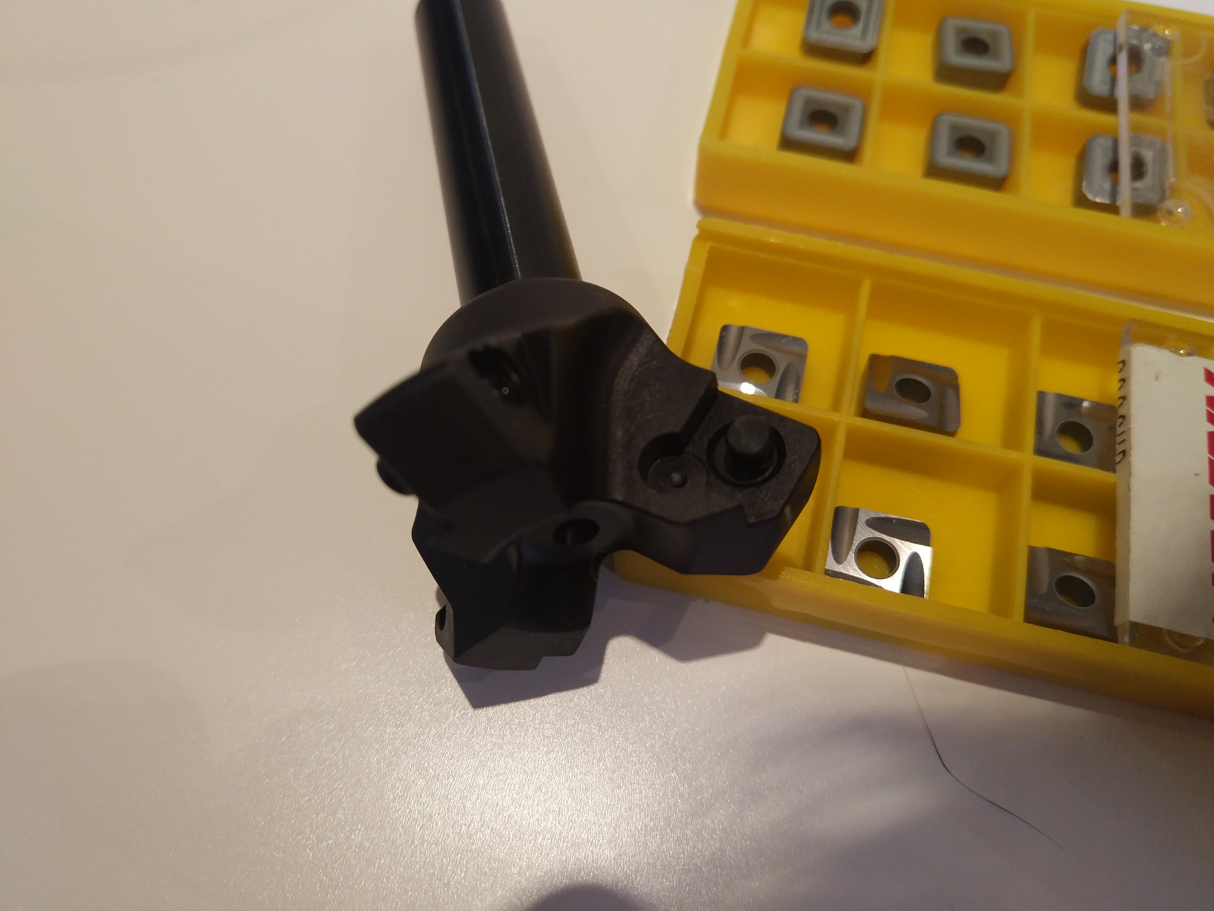 У меня для этой фрезы 2 вида пластин с фаской и с радиусом и те что с фаской работают намного лучше и лучше чистоту дают.