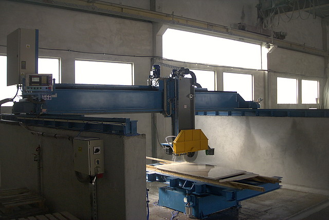Станок предназначен для распиловки слябов (это заготовка из камня определённой толщины) по прямой, распиливается диском диаметром 60см. ступеньками т.е. примерно 5мм. заглубление + скорость подачи 4м. в минуту, когда толщина камня остаётся 5мм. то необходимо совершить операцию дорезки в обратном направлении чтобы снизу плиты в месте реза небыло рваной кромки.