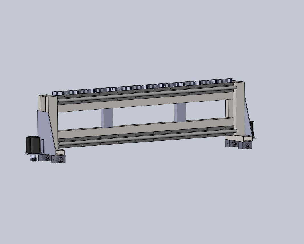 Расстояние между опорными блоками портала я бы увеличил, поставил обязательно косынки на портал сбоку иначе получится очень хлипкая конструкция, под профильной трубой на которой расположены направляющие и рейки нужны доп опоры 1200мм для такой трубы(толшина не указана но думаю не больше 3мм) большое расстояние.