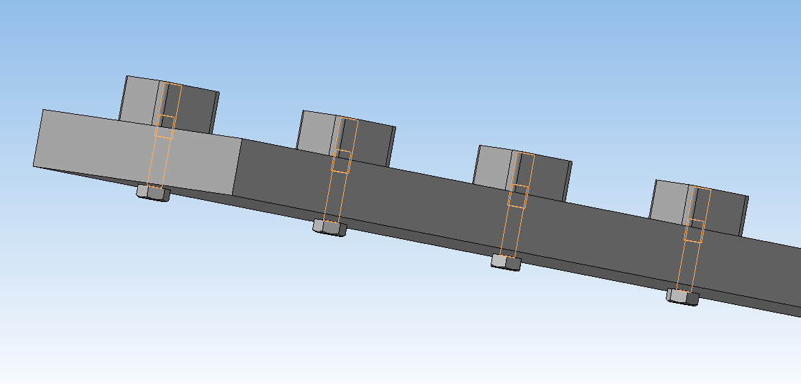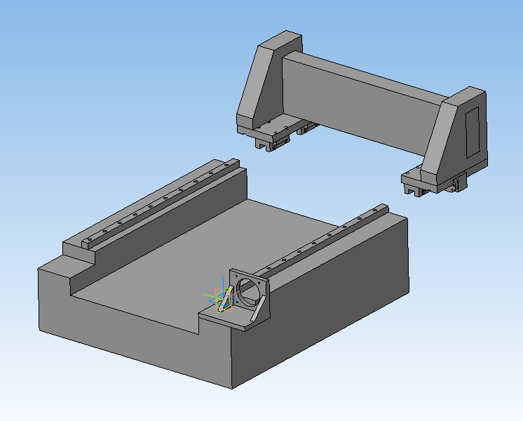 Во-вторых, пересмотрел конструкцию стоек портала по подсказке Фрезерюги, ушел от сквозного крепления балки портала в его стойки. Вместо отверстия сделаю выемку и притяну болтами, вот так: Возможно, еще не решил точно, выемку сделаю на 1-2 мм больше балки, для возможности юстировки. Или вообще выфрезерую открытый сверху и сзади угол...