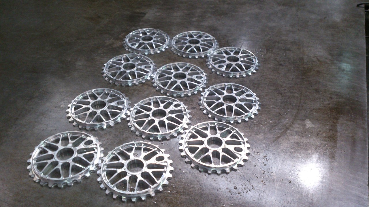 Это должен быть мой первый станок. Раньше никогда сам не работал за такой машиной. Станок хочу поставить дома, и что-бы хватало платить за этот самый дом не планирую потратить более 40-60 тр вместе с оснасткой)) Очень заинтересовался этой веткой http://cnc-club.ru/forum/viewtopic.php?f=3&t=123 Но тут вроде главное назначение это гравировка.. вопрос потянет ли станок такого типа или более классические конструкции приведенные ниже в теме фрезеровку моих деталей (аллюминий д16т) Там рассматривают фрезеровку аллюминия и даже стали НО как гипотетическую возможность при условии малого заглубления итп. Но от теории до практики порой огромная пропасть. И само понятие малое заглубление для меня расплывчато весьма.. и может он потянет пару таких изделий сработав "до отказа" скажем так..И если такой станок будет "вылизыватьт" каждый паз по пол дня наверное не совсем мой вариант.. Просто очень уж заманчива идея иметь у себя дома ЧПУ фрезер под сеть 220-230 для аллюминия. Не нужно платить аренду за помещение никуда ездить итд. Не работа а мечта) Спрос на деталь уже есть нужно только наладить стабильные поставки.. Хотелось-бы за день хотя-бы три звезды такие выдавать где-то.. Мне интересны граверы еще и по скольку деталь одна единственная будет делаться и мне совсем не обязательно чтобы по Z шпиндель высоко ходил. Можно даже еще более компактный вариант по размерам станины. Интересует так-же насколько реально получить такую-же частоту поверхности как на фото(вероятно ее чем-то полировали но все-же бороздки от фрезы изначально были не глубокие) И какова точность таких вот станков? Деталь должна будет cидеть в натяг на оси и совпадать по шагу цепи. Это фактически велосипедная звезда.