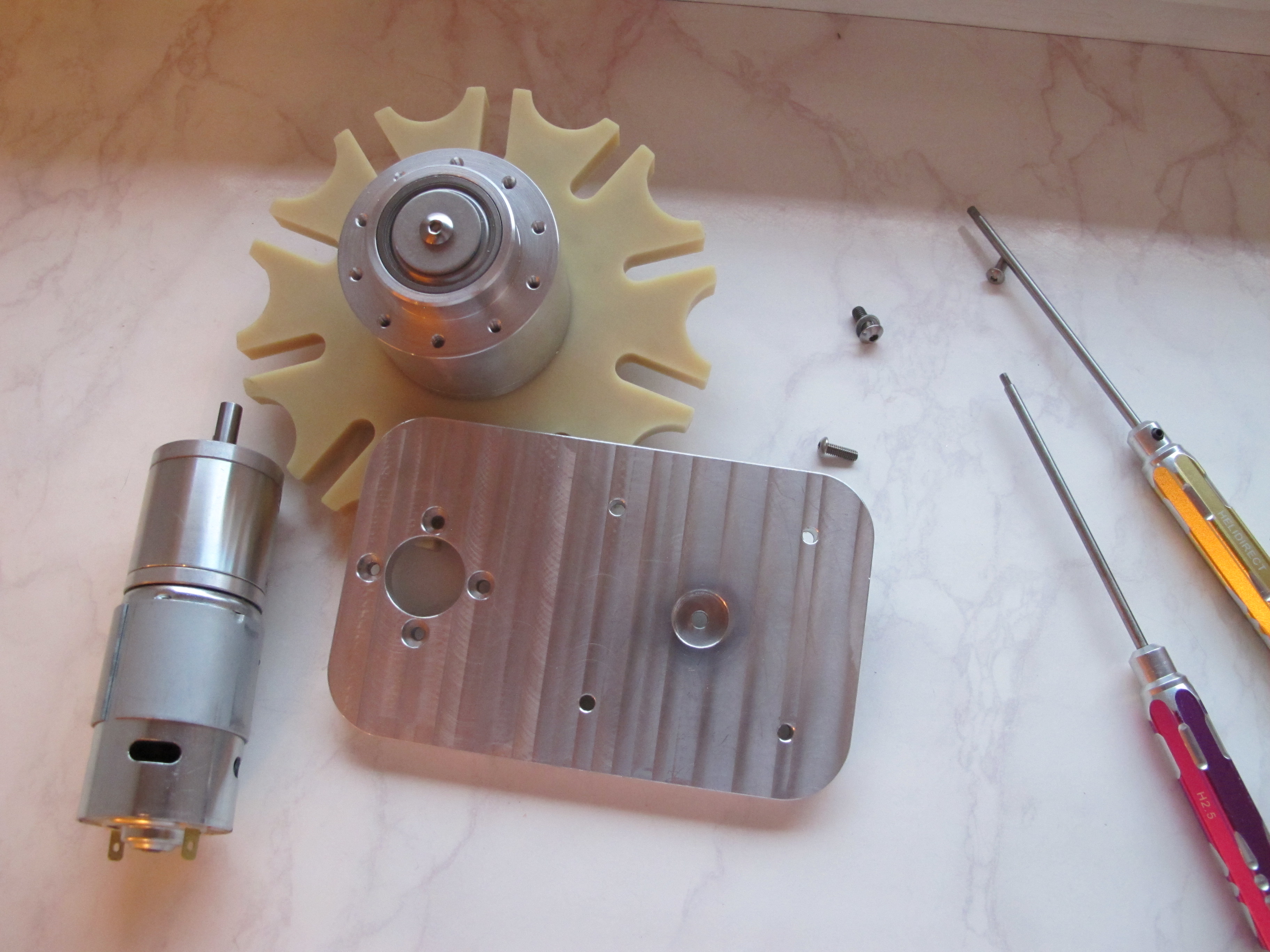 Мотор на 12вольт, хавает прилично. У меня есть классный мотор на 24в, он уже подогнан к этому редуктору